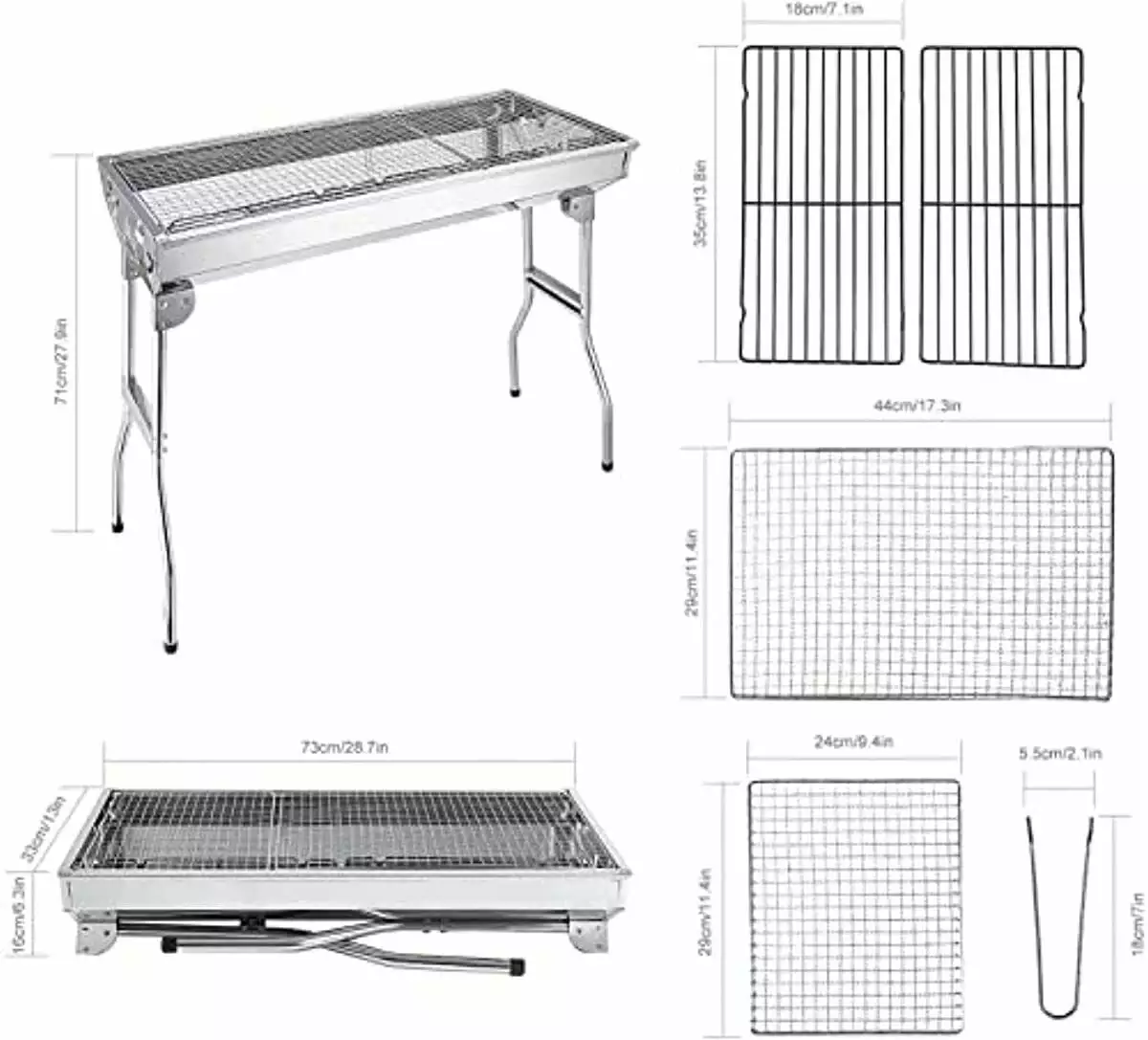 - Healthy & Premium Quality made of rust-resistant stainless steel for years of worry-free use. Heat-resistant and not easy to be deformed. Safe and healthy and non-toxic smoke. Included with the grill is small and large barbecue wire mesh panels meeting all you need. When using the charcoal grill. if you put a layer of tin foil on the charcoal trough. this will maximize extend the life of the grill.