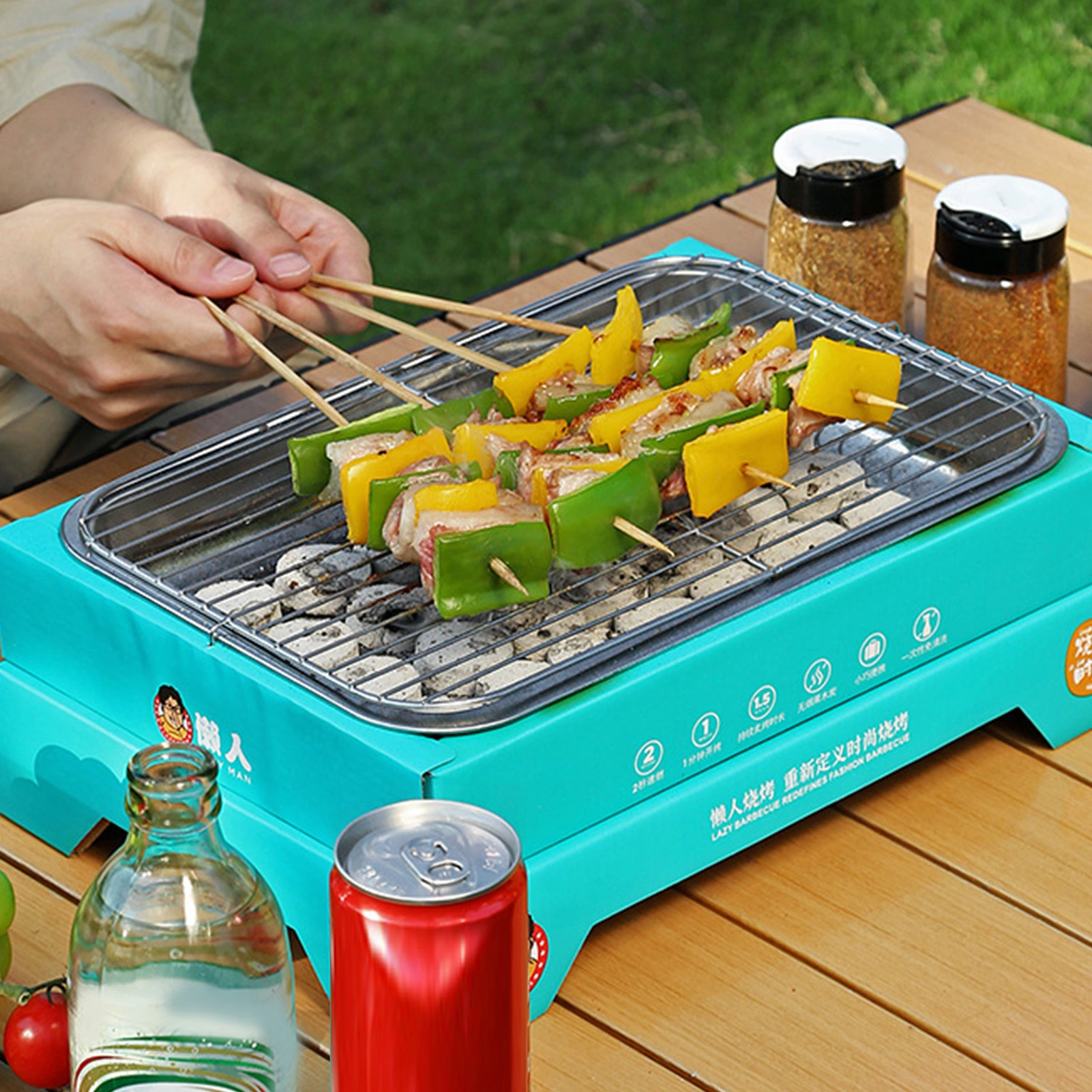 Charcoal Grill Single Use Compact Detachable Stainless Steel Portable Barbecue Smoker Grill for Outdoor Camping Light Blue (containing 30 Charcoal)