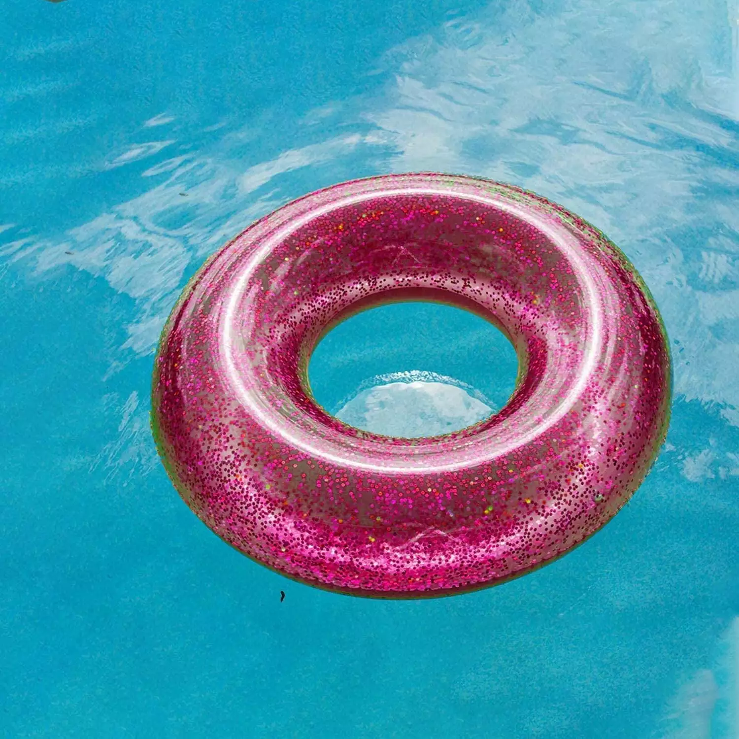 - Glitter Swim Ring: Float your way to summer fun under the sun and in the water with this glitter swim ring! A fun addition to your pool toys. this pool tube is perfect for floating the day away at the lake or in the swimming pool. It makes a great gift at a pool party and a fun mermaid party decoration