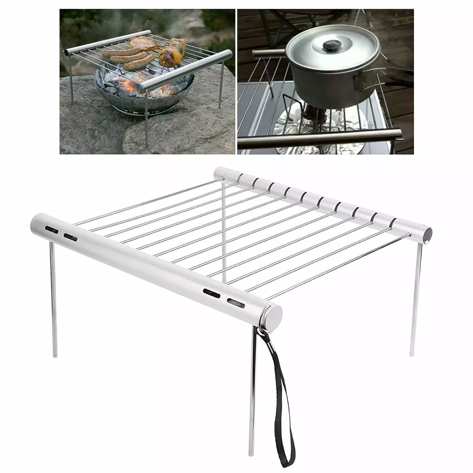 1 Sturdy and easy to assemble. as long as the first and last rods on the grill are screwed in tight. the middle rods will be secure and won’t budge. 2 Lightweight and portable. all grill parts are stored inside the tube and easily slide into your backpack. 3 Easy to clean. just wipe the rods with a towel and slide back into the convenient carry tube. 4 This product is made of thickness stainless steel material. excellent wear resisting. no rust. durable and long lasting. 5 This portable and barbecue grill can be used in all sorts of occasion. for instance. it is perfect for outdoor camping. hiking. cooking. beach. backpacking. picnics tailgating or parties and so on. 6 It is an amazing grilling tool for you to meet your own cooking needs for smoky barbecue. along with different kinds of grilled flavors for you to get the most original flavor of meat.clearance Stainless Steel Charcoal Barbeque Grill Portable Folding Grill for Outdoor Camping Cooking Picnics