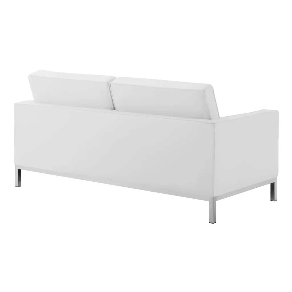 Revolutionize your living room furniture with the iconic Loft Button Tufted Faux Leather Loveseat. Adding visual depth to your living room or lounge space. Loft features soft and durable faux leather upholstery accented in elegant button tufting. This modern living room loveseat comes in a captivating linear design with an external tubular stainless steel frame. four stainless steel silver legs. and non-marking foot caps. Inspired by the richness of mid-century modern style. Loft is the preferred choice of living rooms and lounge spaces. Loveseat Weight Capacity: 600 lbs.