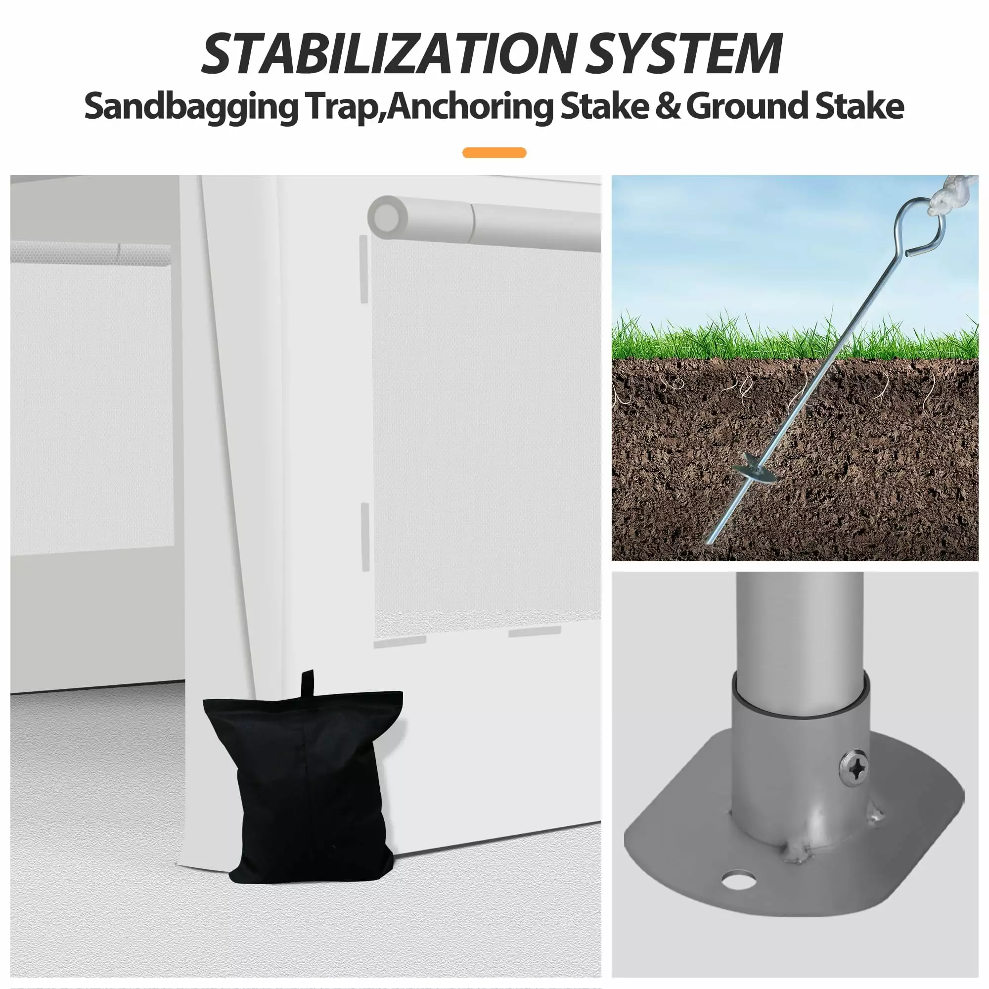 - MORE STABLE DESIGN: Our canopy wedding tent includes Strong Grip. Strong Rope and Sand Bags to ensure the stability of the party tent. The metal stakes ensure that the tent to the groung deeply