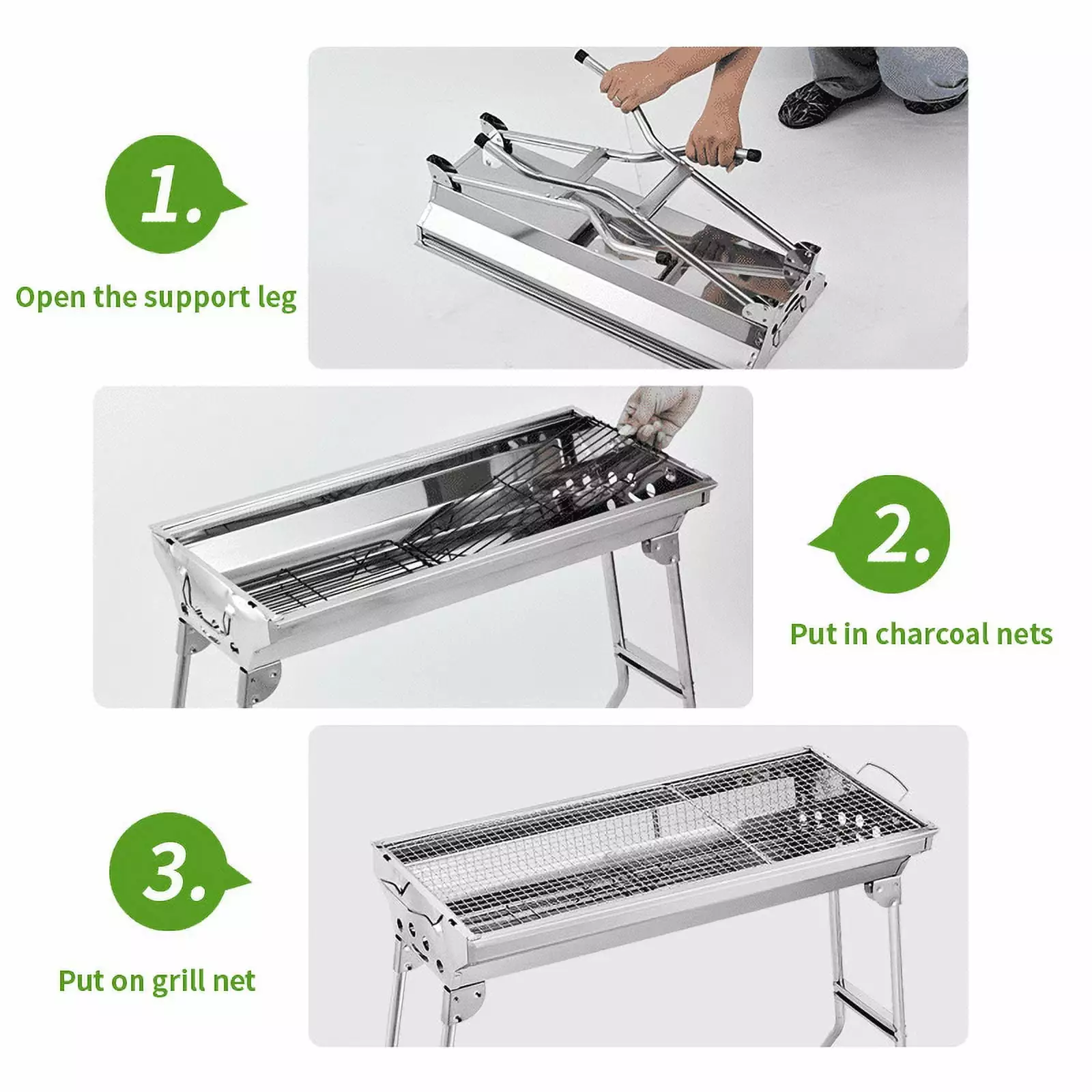 The upgraded Cuisiland Foldable Charcoal Grill Set is perfect for the home garden grill party. It includes a grilling grid and a non-stick pan! Perfect for BBQ Kebobs. Steaks. Roast Chicken. Hamburger. Sandwiches. Fish and more! Imagine the smell of the smouldering charcoal and hickory smoke coming from your grill. There is nothing better than enjoying an ice-cold beer with your friends in the warm sunshine and a hot grill cooking your meat to perfection! Our high-quality charcoal grill is built with thick stainless steel in a smooth finish. rust-free. and with no twist for long-lasting. reliable use. Comes with a clever design. easy setup and fold down for compact storage.