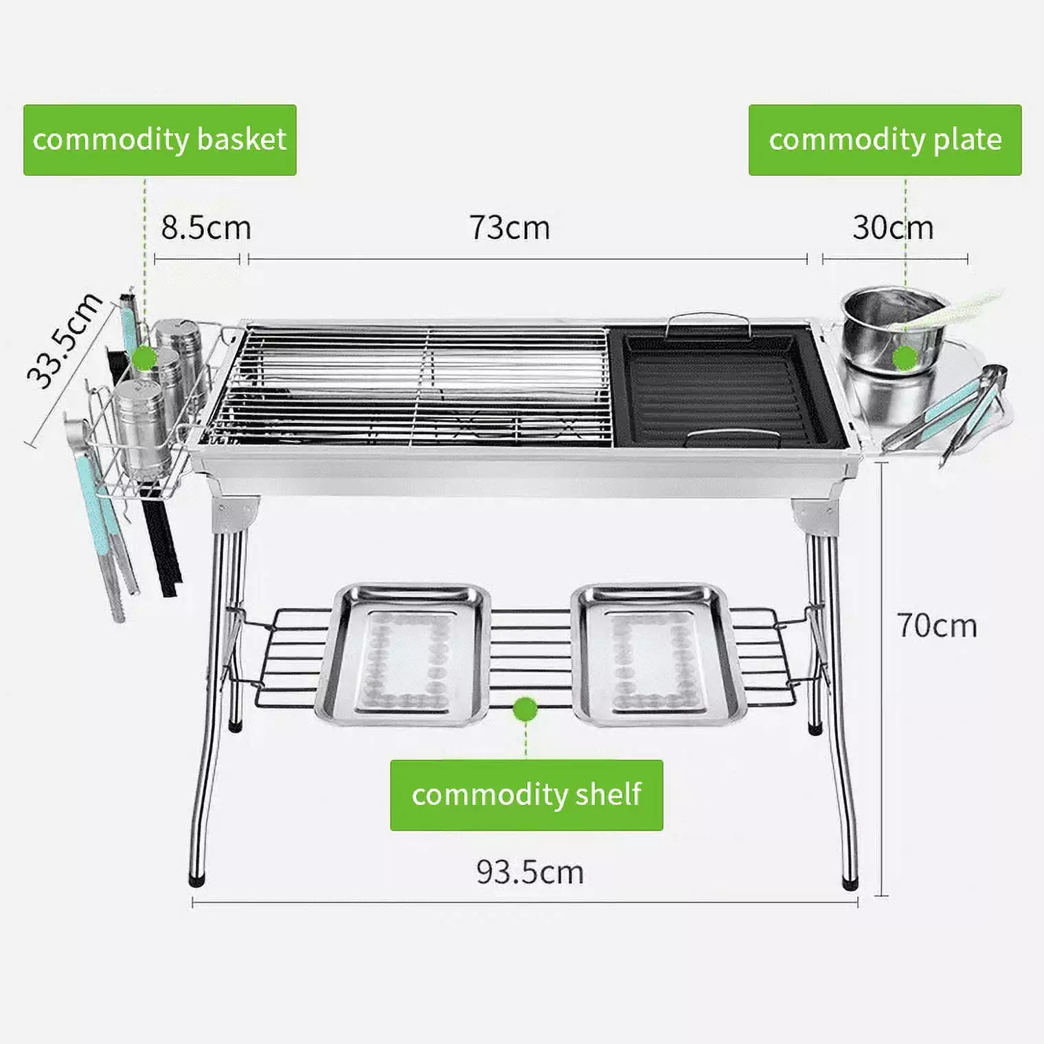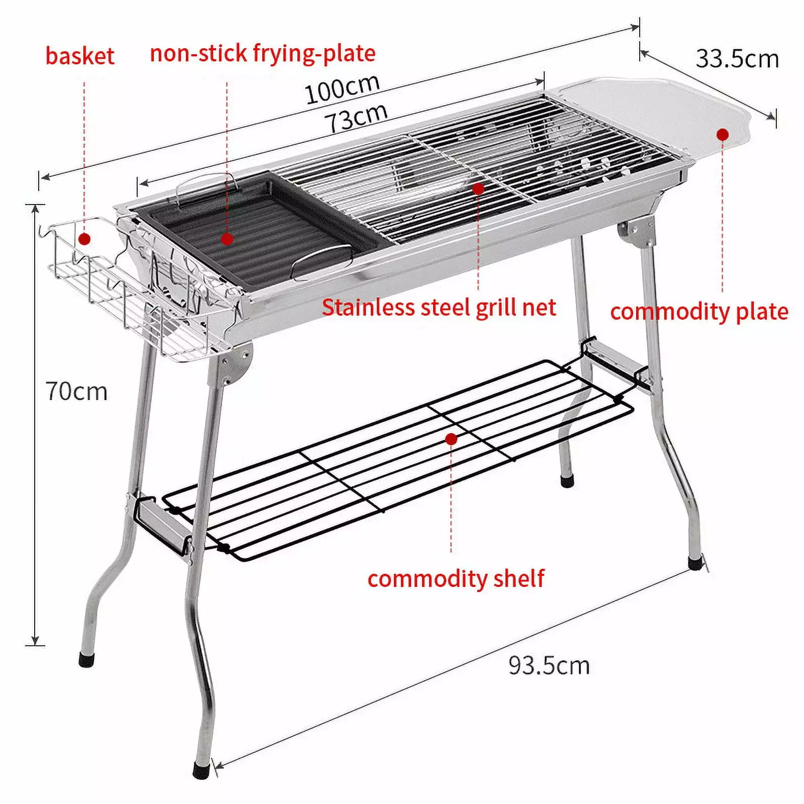 - [Accessories]: BBQ housing. storage basket. non-stick frying pan. stainless steel grill shelf storage board.