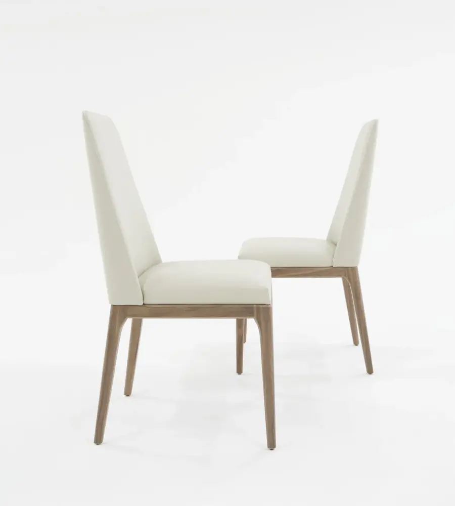 Give elegance to your dining space with the Modrest Encino Modern Grey & Walnut Dining Chair. Featuring softness in a calming way is the padded full seat and tapered back design upholstered in buoyant grey leatherette. Constructed with a Walnut Veneer finish frame and conical legs, this fully assembled