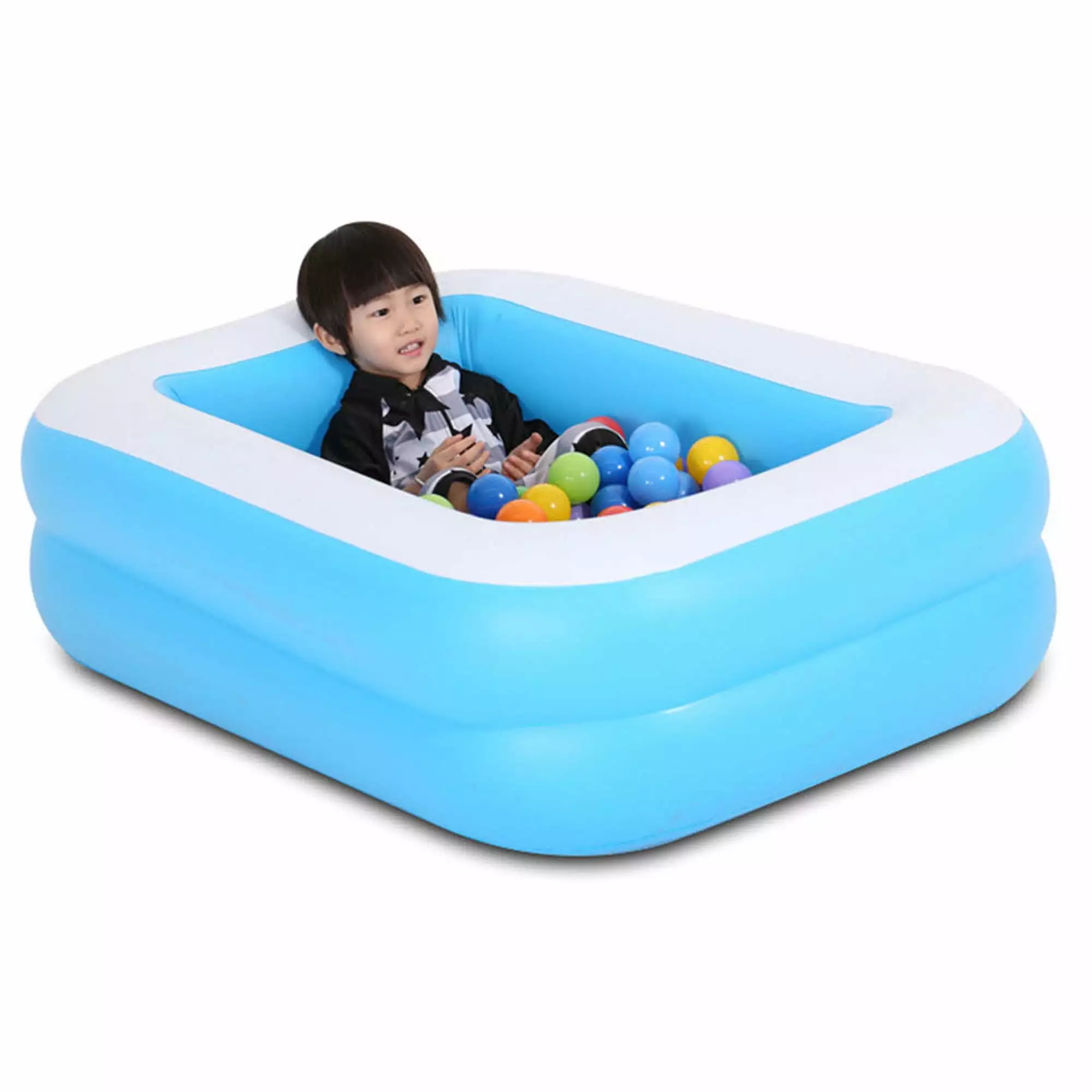 The thicker inflatable air bag at the bottom can effectively prevent the ground from being cold. prevent the water temperature from dropping rapidly. and prevent the baby from falling and tingling when swimming or playing in the swimming pool.
