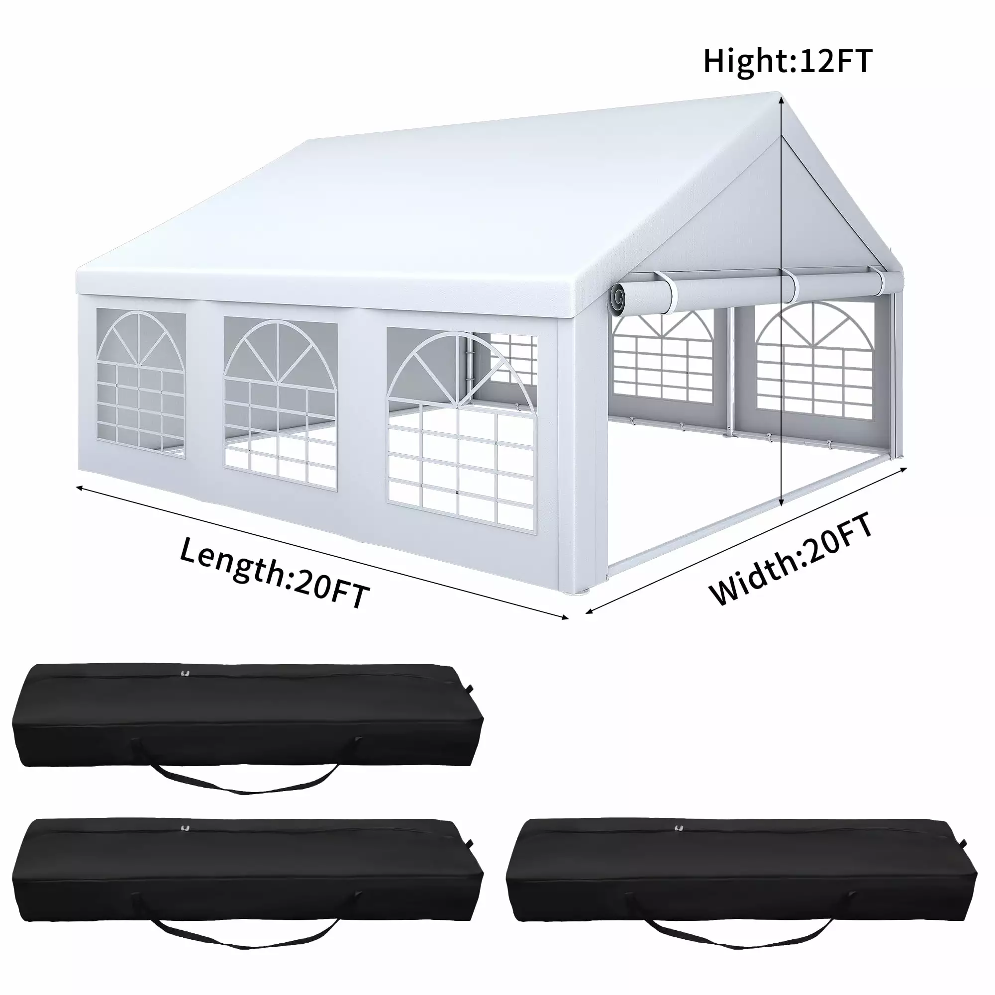 - Comprehensive Package: Includes top cloth. sidewalls with windows. zipper doors. storage bags. ground nails. and pull ropes. Arrives in three boxes. Safety measures and professional installation recommended.