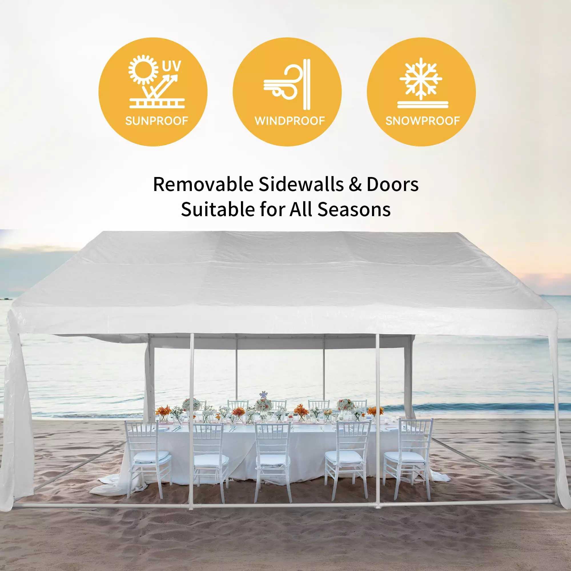 - Versatile Usage: Ideal for weddings. graduations. picnics. parties. BBQs. and more. Commercial and recreational use. Create a temporary outdoor gathering place with shade and rain protection.
