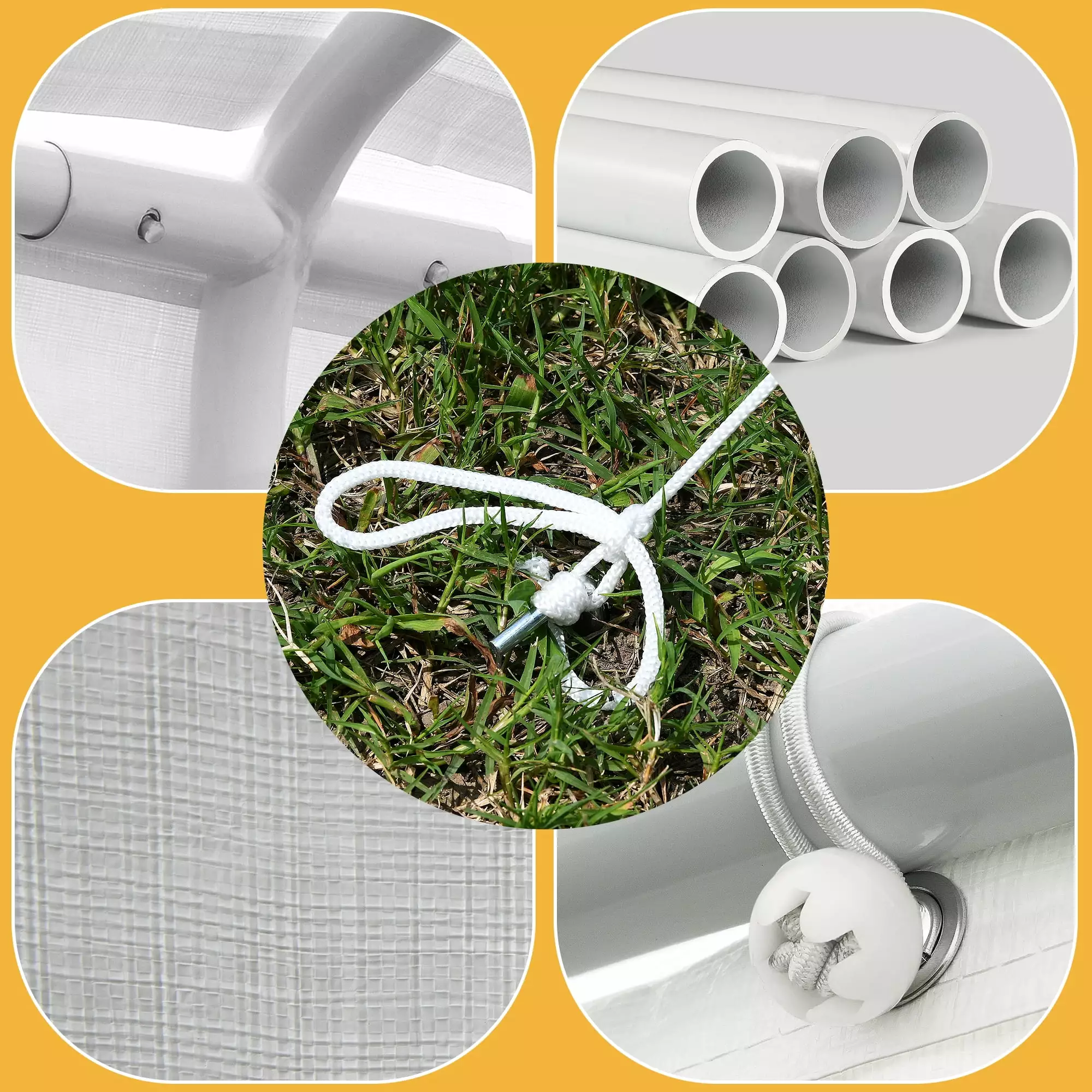 - Enhanced Stability: Ground nails and expansion screws ensure stability on various surfaces. protecting against wind speeds of 25 mph or higher.
