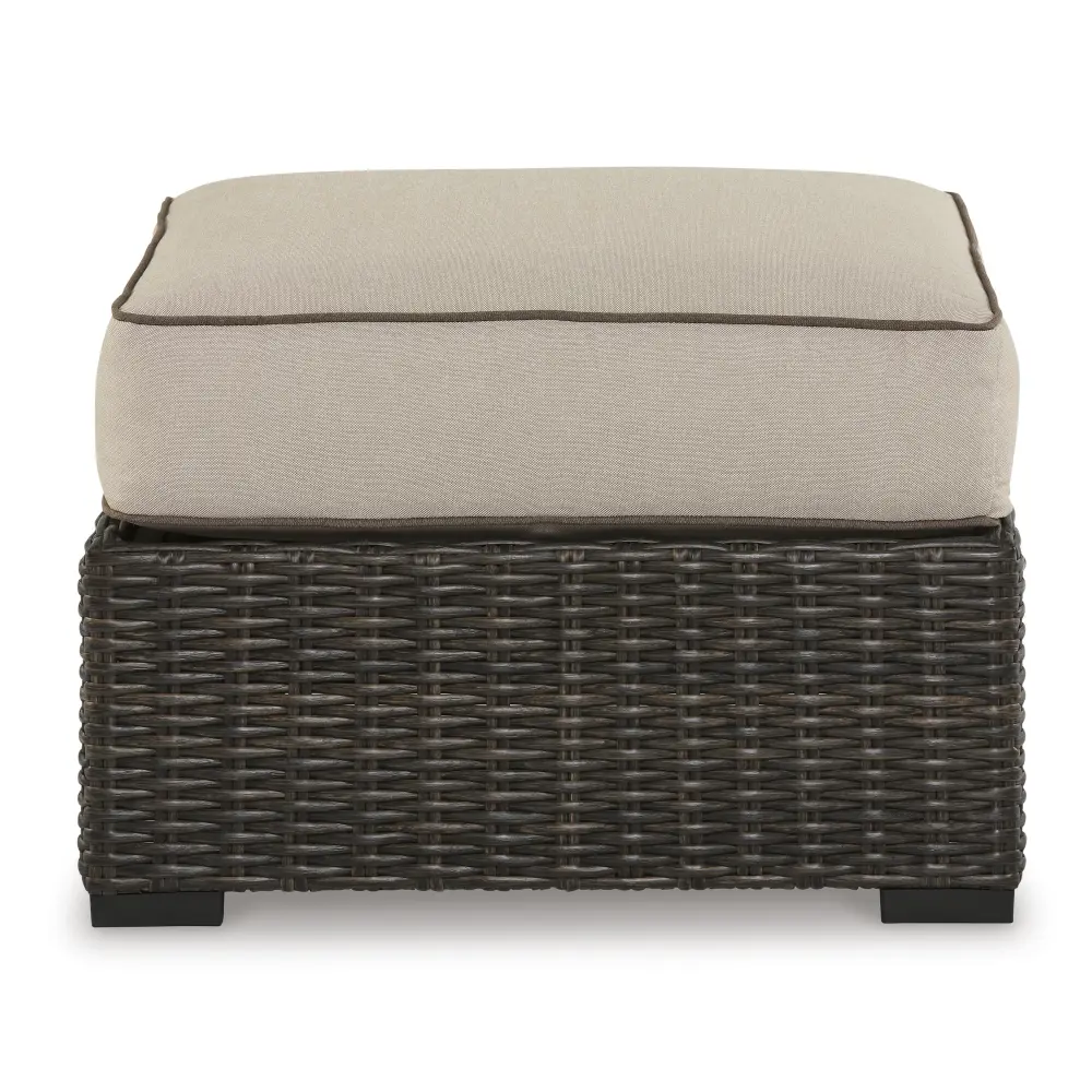 Who says the great outdoors isn’t made for opulent living? This cushioned ottoman offers all the high-end design, plush comfort and durability you could ask for, and then some. Its all-weather, rust-proof lightweight metal frame provides the easy-breezy wicker look you love without the high maintenance. Rest assured, the high-performing Nuvella® fabric is made to stand up to the elements.
