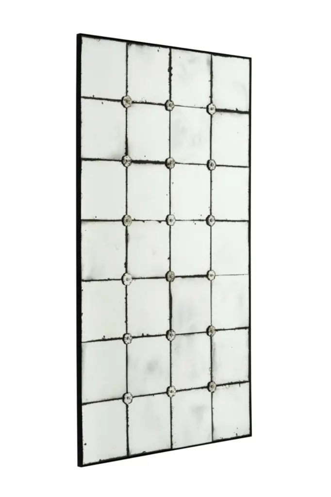Establish an antique aesthetic in your living room with the shabby chic Cedar Mirror. This understated mirror features a beautiful weathered look with antique mirror glass tiles.