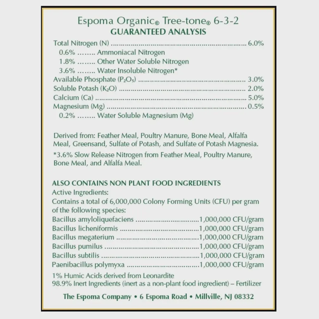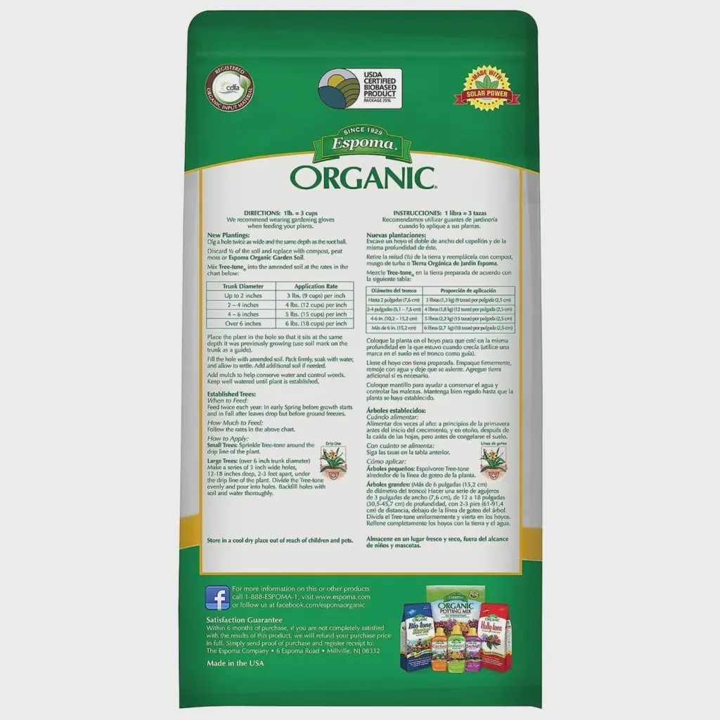 Tree-tone is the ultimate organic fertilizer for all shade, fruit & ornamental trees! It’s a rich blend of the finest natural & organic ingredients and enhanced with humates & beneficial microbes. No sludges or fillers are ever used. And because it’s made in our state-of-the-art solar powered manufacturing facility, consistency and quality are guaranteed.