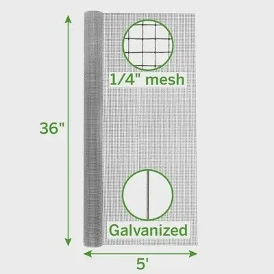 Expert Gardener Galvanized Steel Hardware Cloth is ideal for many applications around your farm, home, and garden. This roll of 36-inch by 5-foot galvanized welded steel wire features a square mesh weave and is both lightweight and durable. Hardware cloth is an extremely versatile product that can be used for many applications. It provides great protection and support for plants, erosion control, and compost containment. Rolled wire makes fencing easy to install and alter to meet your needs. Complete the projects around your farm, home, or garden with Expert Gardener Galvanized Steel Hardware Cloth.