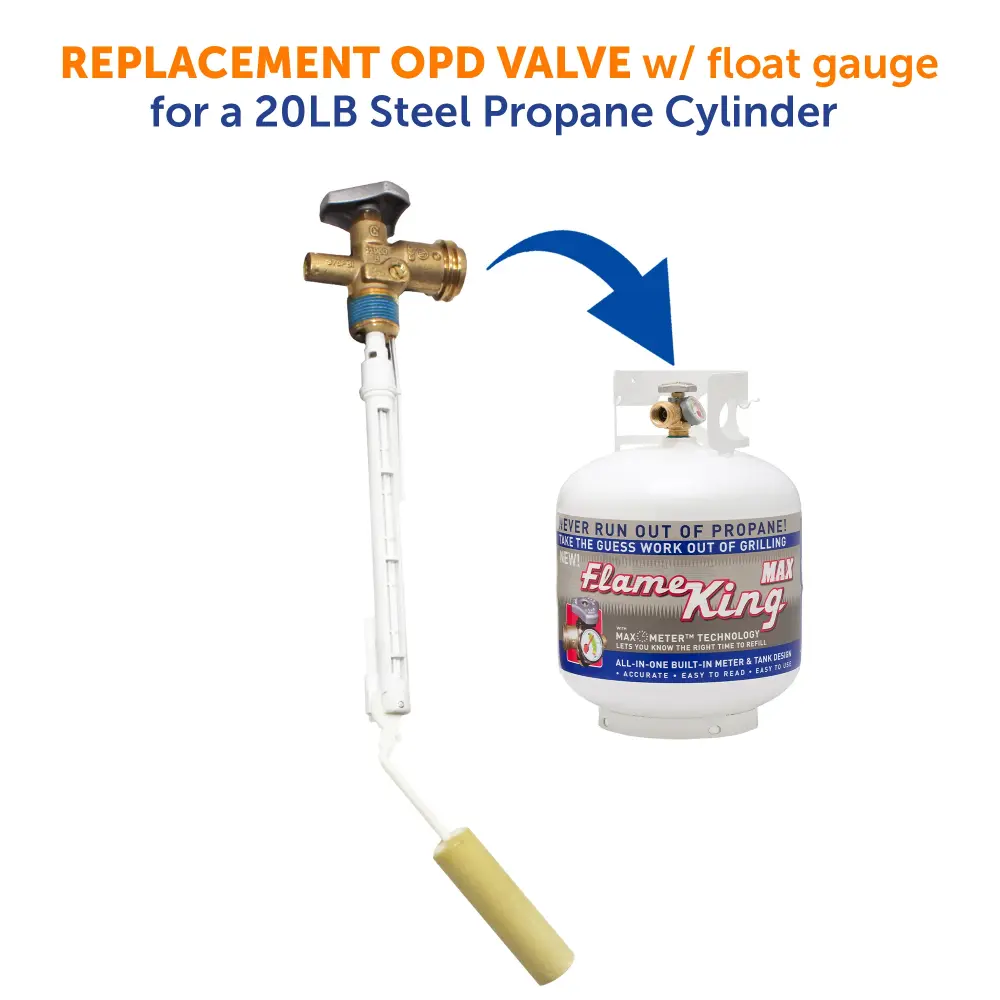 Flame King Overfill Protection Valve helps prevent the 20LB propane tank overfills by closing when propane liquid level reaches to an 80% fill rate. The Float Gauge measures the level of propane inside the tank – it moves up and down with the liquid propane level. The gauge dial on the outside of the tank (not included) then displays the approximate percentage of propane remaining. Made of fine premium materials for your safety – UL Listed.
