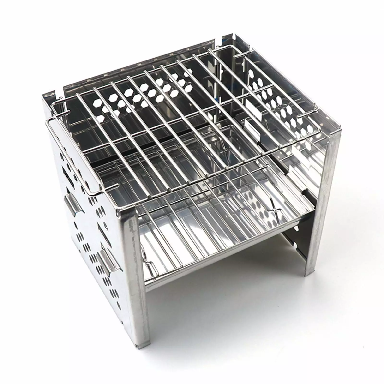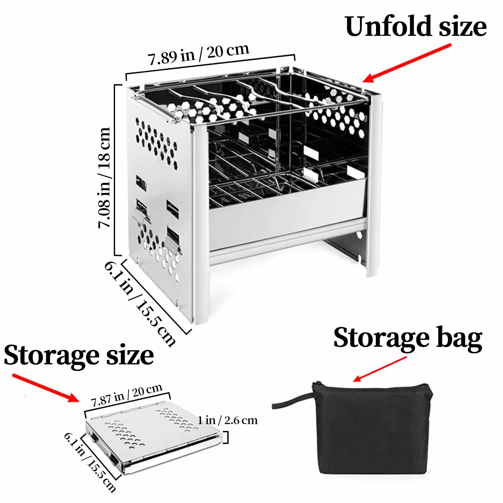 [Reasonable Design]No screws. 10 minutes to complete the assembly. detachable grill and Ash collector without debris. easy to clean. The shape of the chimney is designed to firepower and save.
