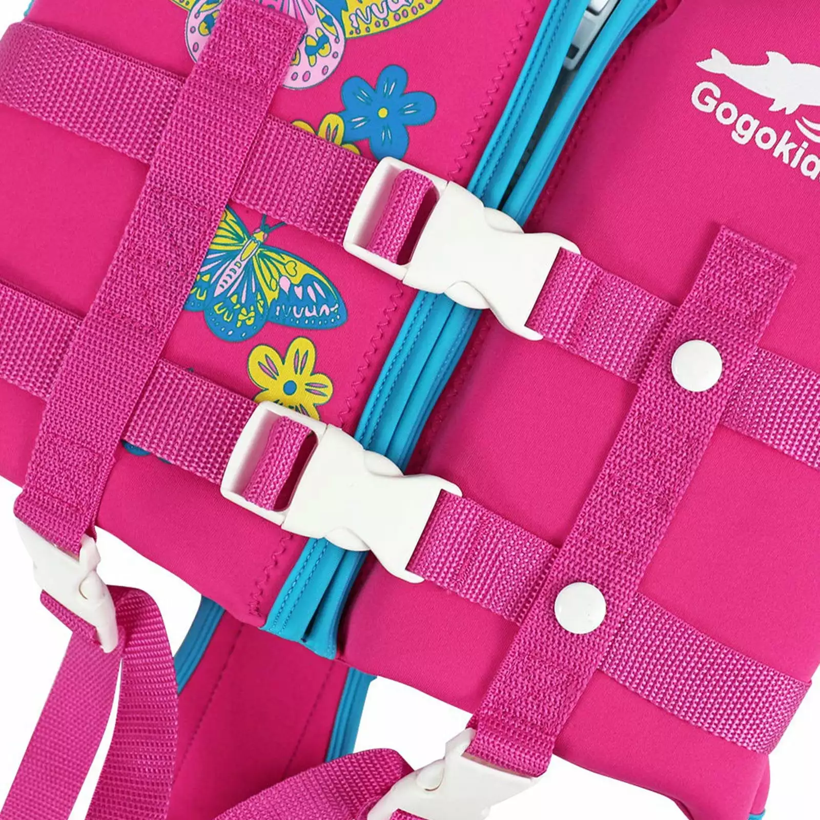 Comfortable Material: Gogokids baby life jacket is made with super soft. high-quality polyester and cotton-filled material. which is more comfortable. soft. and lighter. It has breathable and skin-friendly functions. which are more suitable for children. Manufactured in accordance with us UL life jacket safety certification standards. built-in new environmental protection EPE polyethylene foam. the intimate design conforms to the human body structure design. can provide super buoyancy. so no need to use other products to enhance buoyancy. More Safety: The swimwear uses three safety buckle designs. which means that it can better fit the children’s bodies and provide them with sufficient buoyancy in the water. The adjustable buckle at the bottom will not loosen even if it floats up and down in the water. increasing safety. Swim Easier: Our kid’s swim vest can help kids float and keep balance in the water. more freedom and confidence to swim and play. Can be used in swimming pools. beaches. on boats. or by the lakeside.