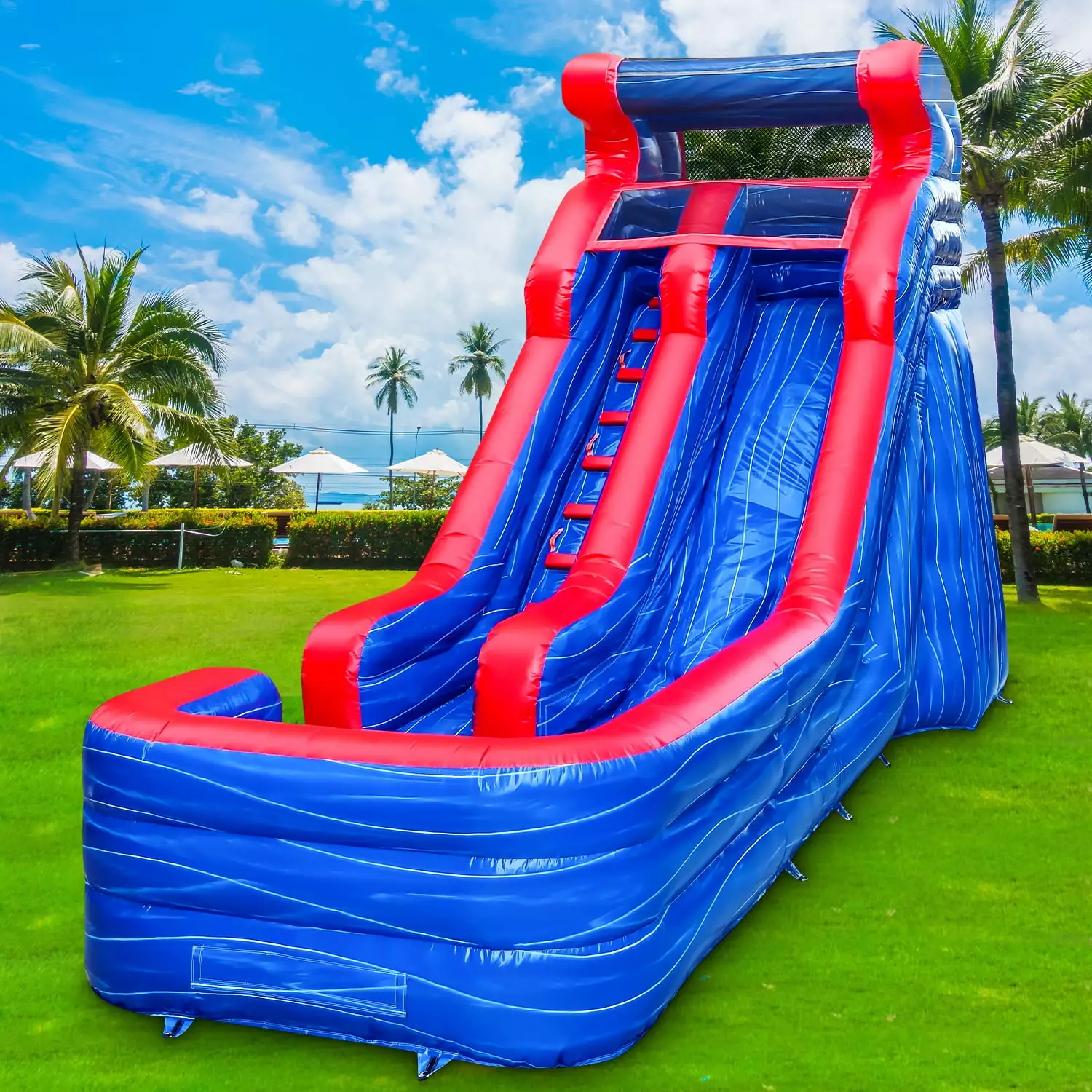 - This adult inflatable water slide can keep multiple kids entertained simultaneously. 3 fun functions: climbing the wall. water slide. and splash-down pool.
