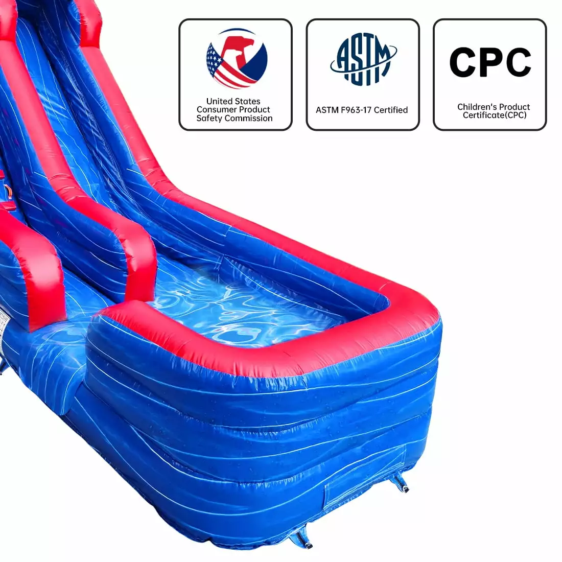 - Made of 16 Oz thickened PVC material. our kids waterslides for backyard pass ASTM & CPSIA certification and meet CPC standards. Perfect for any occasion like celebration. family party. or as a party rental.