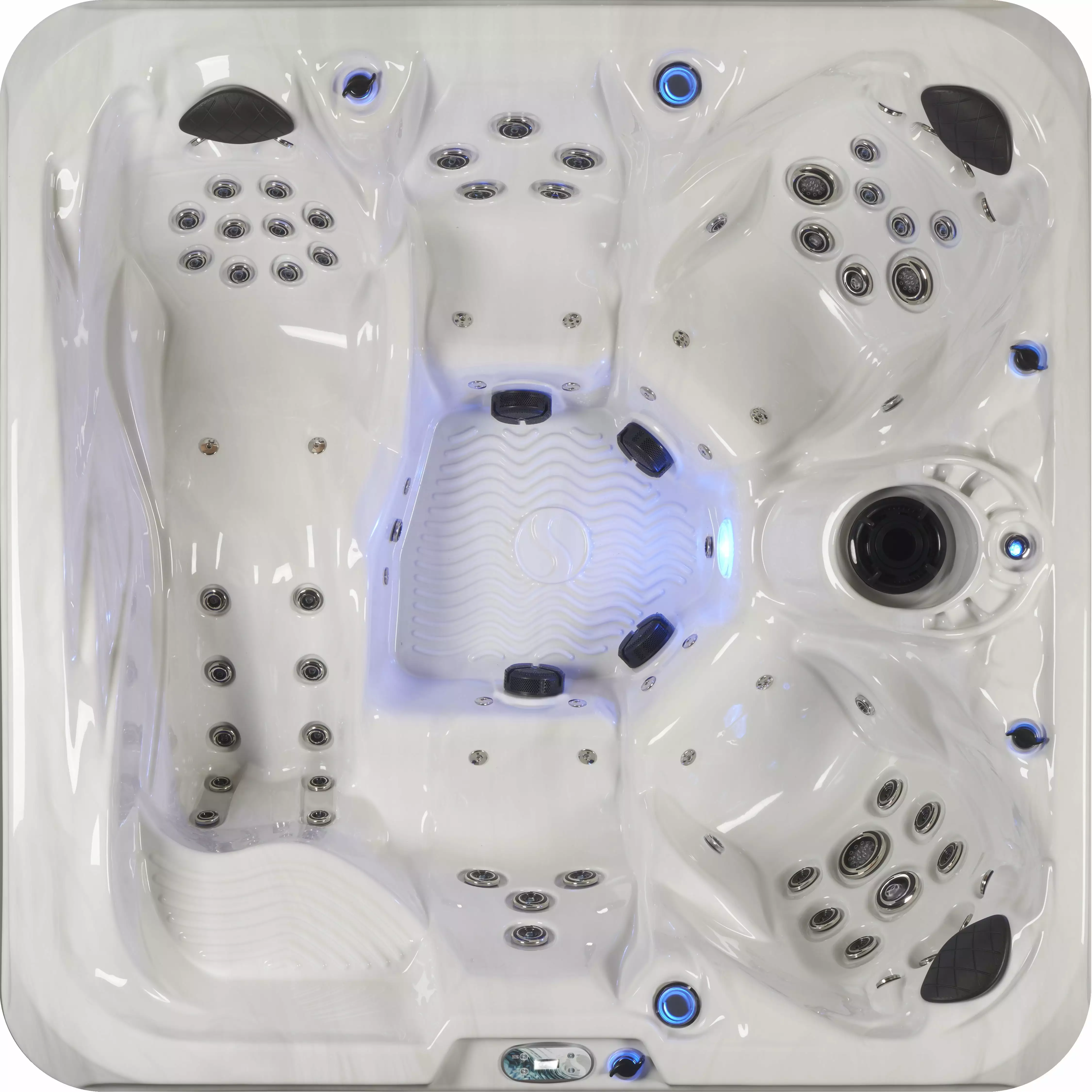 The Grand Banks is a well-appointed spa designed to improve the way you feel and live every day. Be transformed by our 120 streaming jets of soothing water. through 81 fully adjustable stainless-steel jets while they target the areas where you want it the most. The Grand Banks spas have seating for up to 6 people with a single-lounger. Our careful design delivers the optimal and most effective water pressure through every jet. leaving you refreshed. The energy-efficient 2 x 5 BHP 2-speed pump & 1-speed pump with 1 HP Blower has been specifically engineered to deliver powerful. yet comfortable. deep tissue massage. A 4kW stainless-steel heater consistently maintains your ideal water temperature. You control your spa experience. your way. with our user-friendly backlit digital topside control. Beautiful LEDs enhance the waterfall. beverage holders. and control valves. Additional lighting effects are in the main light and exterior cabinet lighting for improved ambiance and safety. Our cabinets are UV-resistant. and maintenance-free. A factory-installed ozonator make maintaining your spa easy. Ozone delivers natural water purification. keeping your spa water cleaner and reducing the need for harsh chemicals. The tapered insulated and locking spa cover also helps keep spa water free of debris and increases safety and efficiency. 2-tier spa steps are included. too!