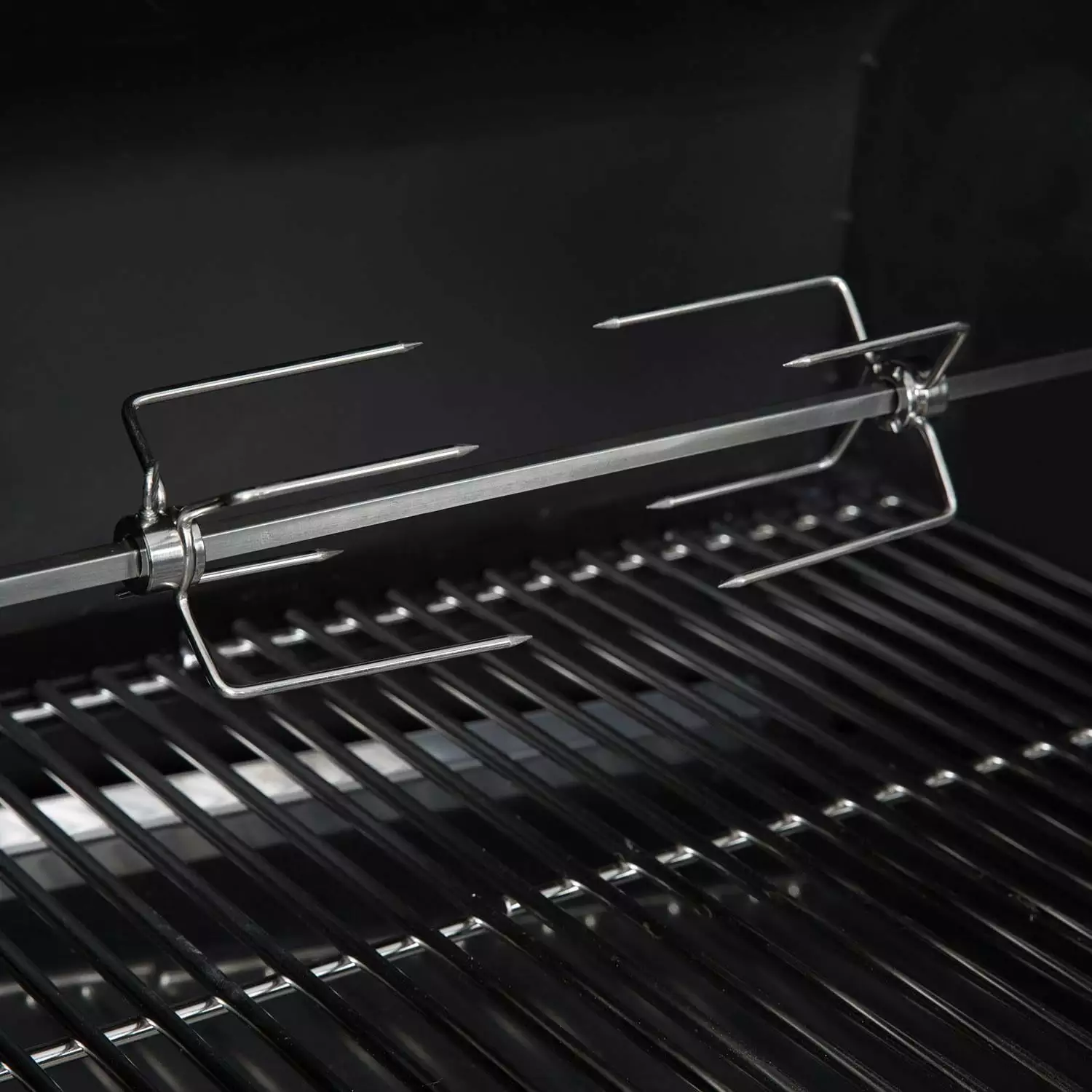 Green Mountain Grills Rotisserie Kit For Ledge Grills – GMG-6038. GMG-6038. Grill Rotisseries. Convert your GMG Prime Plus Pellet into a wood-fired rotisserie. Slow roast and smoke whole chickens. pork shoulders. loins. ribs. and much more. Built to withstand the outdoor elements. the 110V motor is enclosed in a stainless steel housing. It can hold up to 24 pounds. This rotisserie kit is designed to fit Ledge pellet grills only….