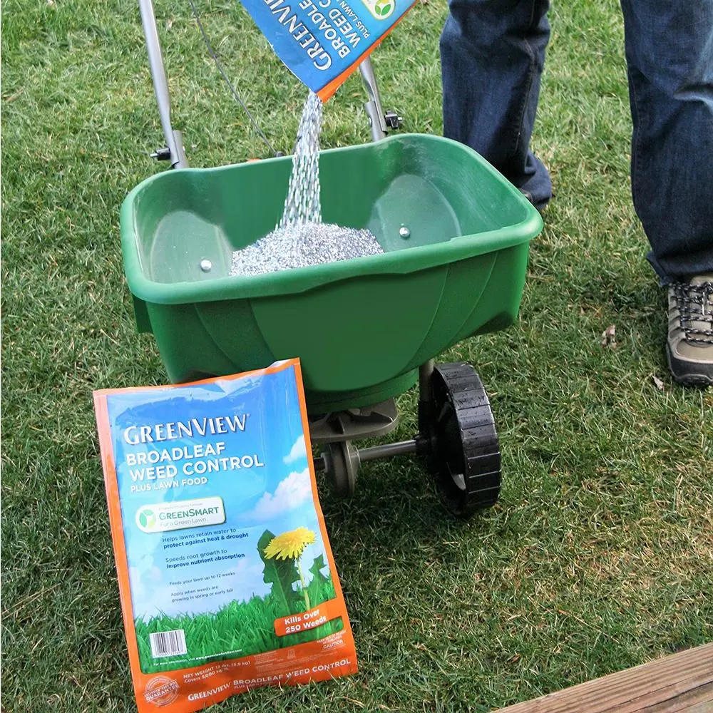GreenView Broadleaf Weed Control plus Lawn Food with GreenSmart is a long lasting zero phosphate fertilizer that feeds your lawn for 8 weeks and controls broadleaf weeds including dandelion. clover and plantain. GreenSmart is the smartest way to give your lawn the nutrition it needs by speeding root growth to improve nutrient absorption. Kills and controls over 250 listed weeds. including dandelions. clover and plantain. Helps lawn retain water to protect against heat and drought.