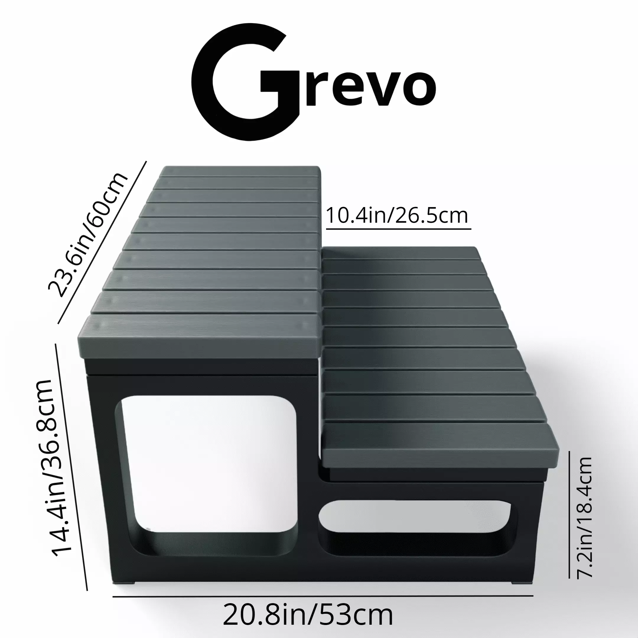 The GREVO plastic outdoor steps are meticulously designed for ease of use in close proximity to a jacuzzi. pool. both indoors and on the hot tub deck. or as patio steps/garage steps. Additionally. hot tub stairs function as portable steps for reaching high cupboards or accessing elevated spaces such as tall campervans. including spa steps hot tub. hot tub step. hot tub steps outdoor. spa stairs. spa step. hot tub spa steps. outdoor step. outdoor steps stairs. steps outside. hot tub steps grey. hot tub steps with storage. spa steps with storage. spa stairs for hot tub. hot tubs steps. outdoor steps for patio. deck steps. concrete steps for outside. premade patio steps. inflatable hot tub steps. hot tub stairs with storage. and hottub steps. The structure boasts a rugged and reliable design. ensuring slip-resistant spa steps for the hot tub that guarantee a simple and safe entry and exit for your spa space. Horizontal slots facilitate water drainage. enhancing the drying speed of the 2-step stairs. Crafted from high-density polyethylene. these outdoor steps are durable and exceptional in quality with long-lasting resilience. Constructed from maintenance-free materials. these porch steps for outside are corrosion-resistant and won’t rust. meeting and surpassing your expectations for spa steps hot tub. You can trust that these outdoor steps for the house will endure for many years. Select from three color choices for your spa steps for outdoors: grey. black. or brown (espresso). offering a variety of options. Our hot tub steps heavy duty come with assembly instructions demonstrating their effortless assembly in just 5 minutes. No tools are required; everything necessary. including spa steps with storage. is already provided in the kit. If you encounter issues with delivery. assembly. or any other matter. contact us. and we will promptly address your concerns regarding hottub steps.