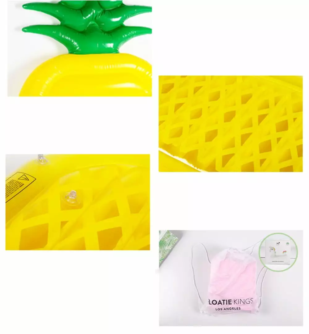 - PINEAPPLE DESIGN: The floating pillow in the swimming pool is pineapple-shaped. beautiful. and practical. Both children and adults can bring a lot of fun. Whether outdoor or indoor. swimming pool. lake. beach. etc.