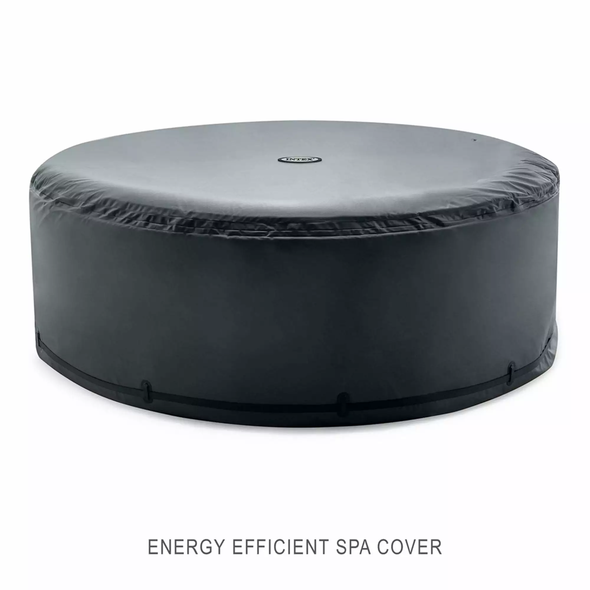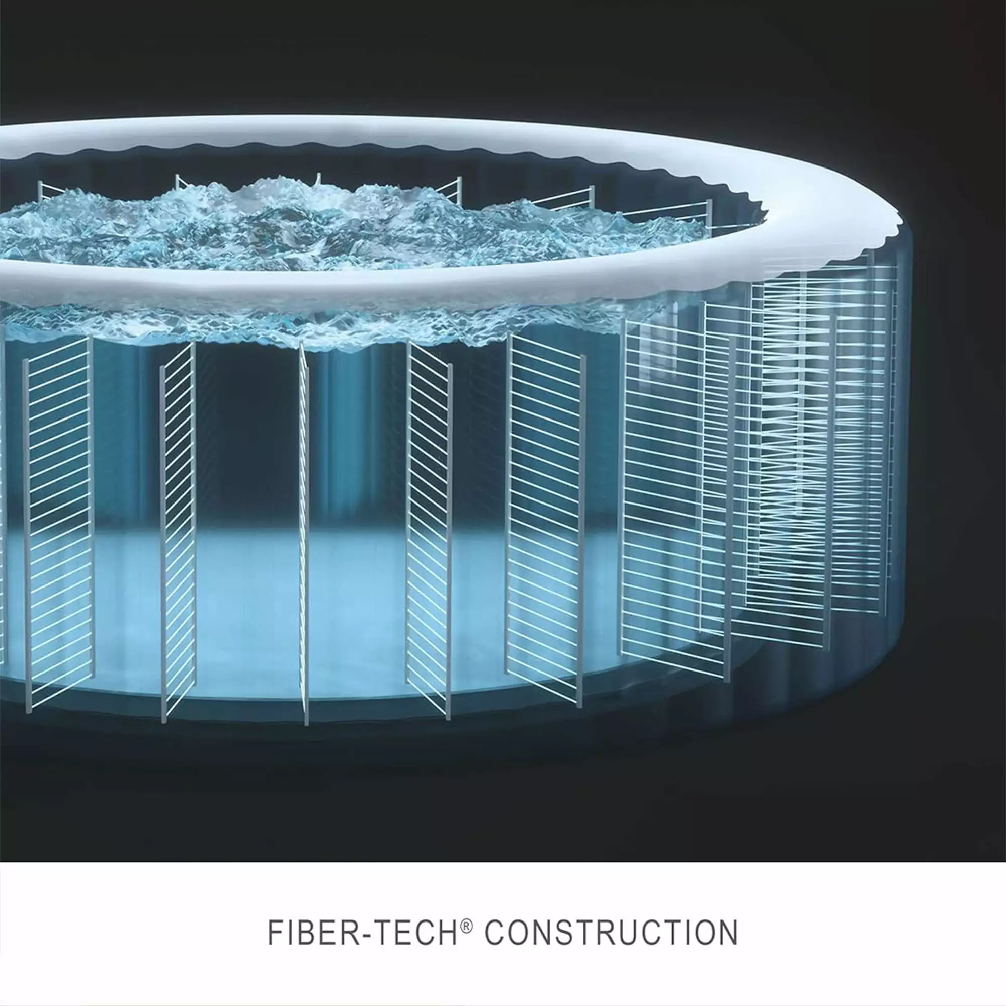 Let your worries bubble away as you unwind in the INTEX PureSpa Plus Inflatable Hot Tub Spa. Providing ultimate relaxation at the touch of a button. this 4-person portable hot tub features a control panel that activates 120 high-powered bubble jets surrounding the interior of the hot tub for a refreshing massage. The heating system adjusts to fit your personal temperature preference allowing for a stress-free spa experience. Our blow up hot tub is built with color-changing LED lights. headrests. and a hard water treatment system that stops calcium buildup. ensuring your spa time is comfortable. The setup is just as easy and will be ready for water in about 20 minutes. You’ll have everything you need for a relaxing spa day with an energy-efficient insulated cover. 2 filter cartridges. thermal ground cloth. an inflation hose. a carry storage bag. a floating chlorine dispenser. and a test strip. If you’ve always wanted a jacuzzi hot tub without permanently taking up space on your patio. this PureSpa Plus hot tub is a relaxation game-changer.