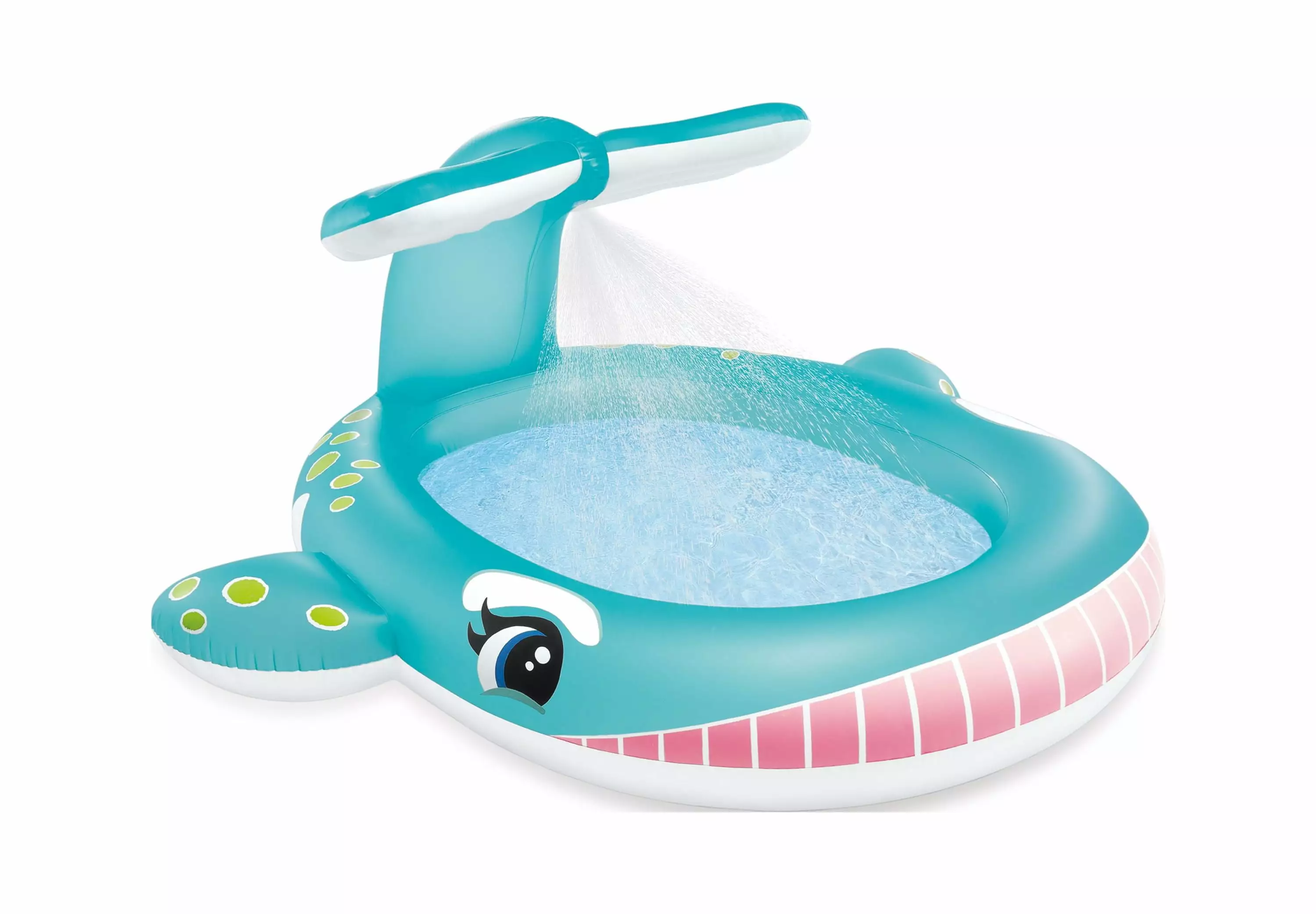 Add a little splash to your backyard this summer with a kids pool that’s extra fun and refreshing. The Intex Inflatable Whale Spray Kiddie Pool isn’t just a pool for kids. it’s practically a mini water park. All you have to do is hook up a standard garden hose to the kiddie pool and the water spout in the whale’s tail will start spraying. It’s perfect for those extra hot summer days. Measuring 79 inches long. 77 inches wide. and 36 inches high. this kid’s pool is perfect for children 2 learning to swim for the first time because it exposes them to the water in a safe environment with mom and dad. This particular whale spray pool holds 53 gallons. but still has plenty of space for both a parent and 2 kiddos.Intex Whale Spray Swimming Pool