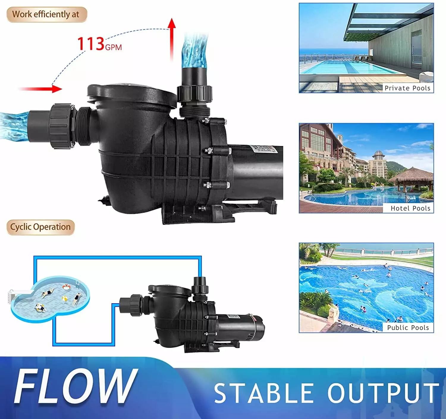 - Anti-corrosion structure:This swimming pool pump is made with heavy-duty. corrosion-proof construction. Advanced engineering provides high efficiency and minimal noise.