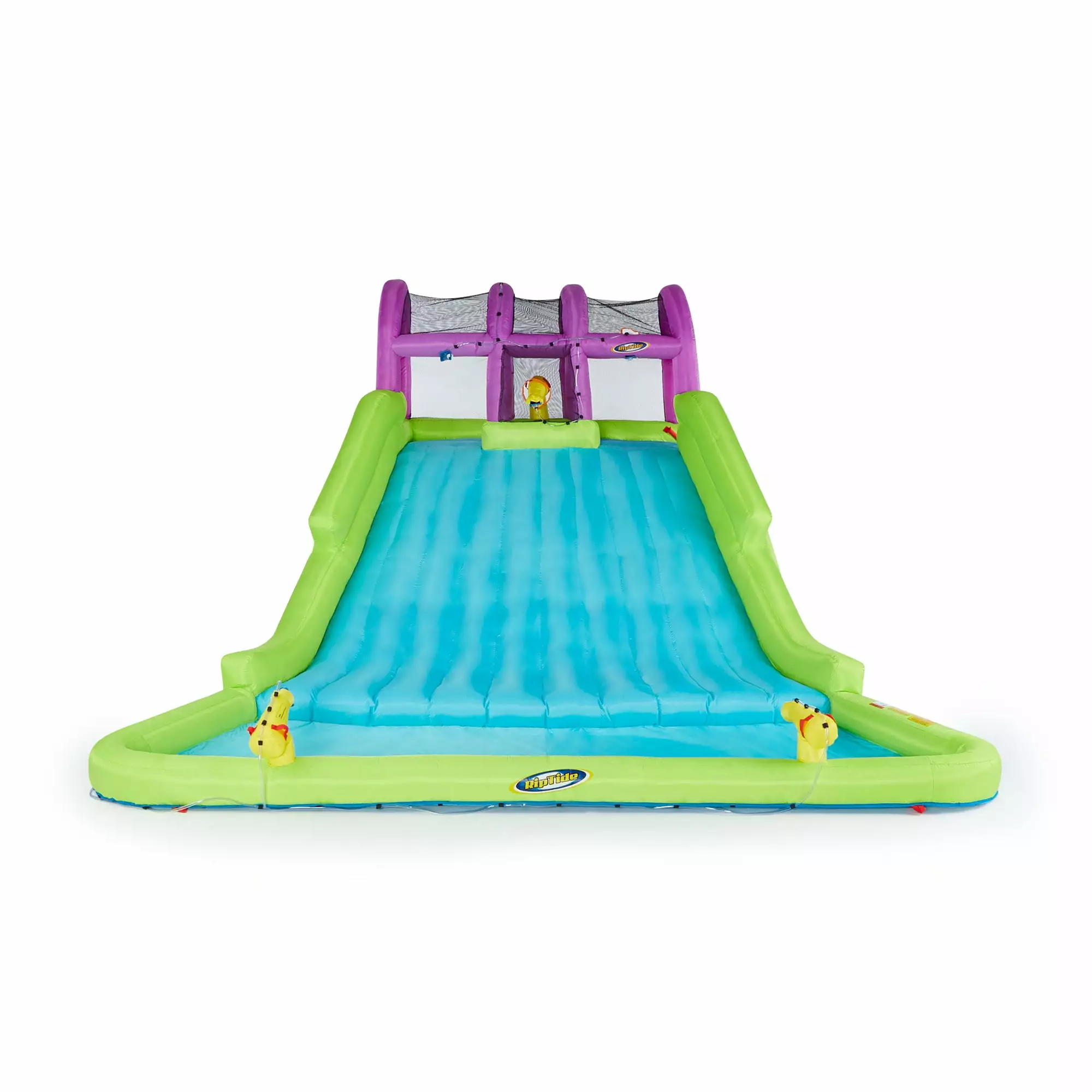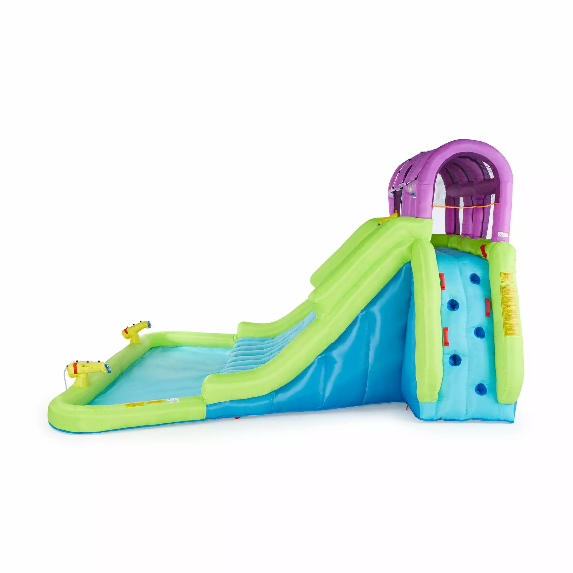 - Plenty of room for everyone to have fun with the massive slide. climbing wall. splash pool. and 3 water cannons