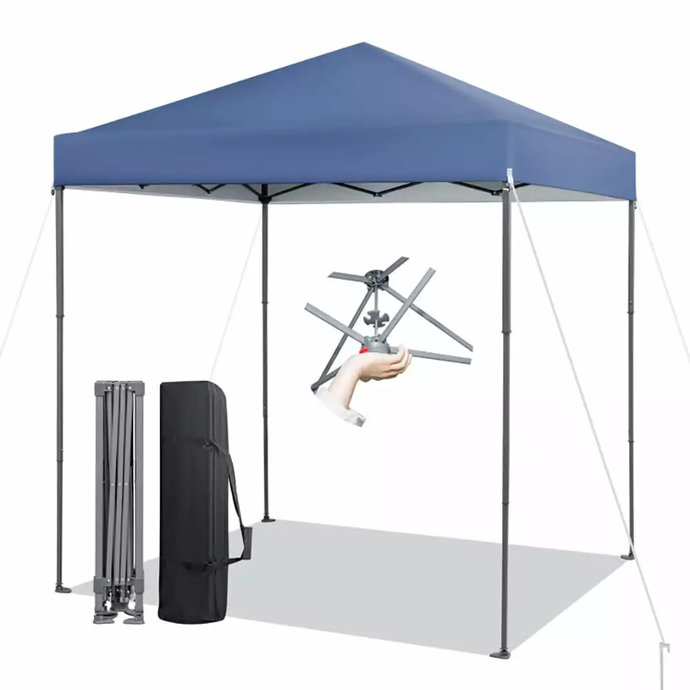 - Adjustable for Multi-scenes: The folding canopy size covers a shaded area of 6.6 ft x 6.6 ft and is suitable for outdoor picnics. camping. parties. small business events. etc. In addition. with the spring buttons on the support legs. you can easily adjust 3 different height settings (6.2-8 ft) depending on actual occasion.