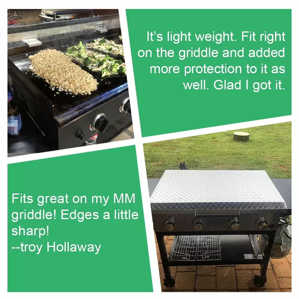 - Diamond Surface Appearance: this cover is diamond surface design. which not only bring your griddle with a nice looking. but also the material of is aluminium.It is not easy to rust and can be used in any harsh environment. protect your grill in all directions.