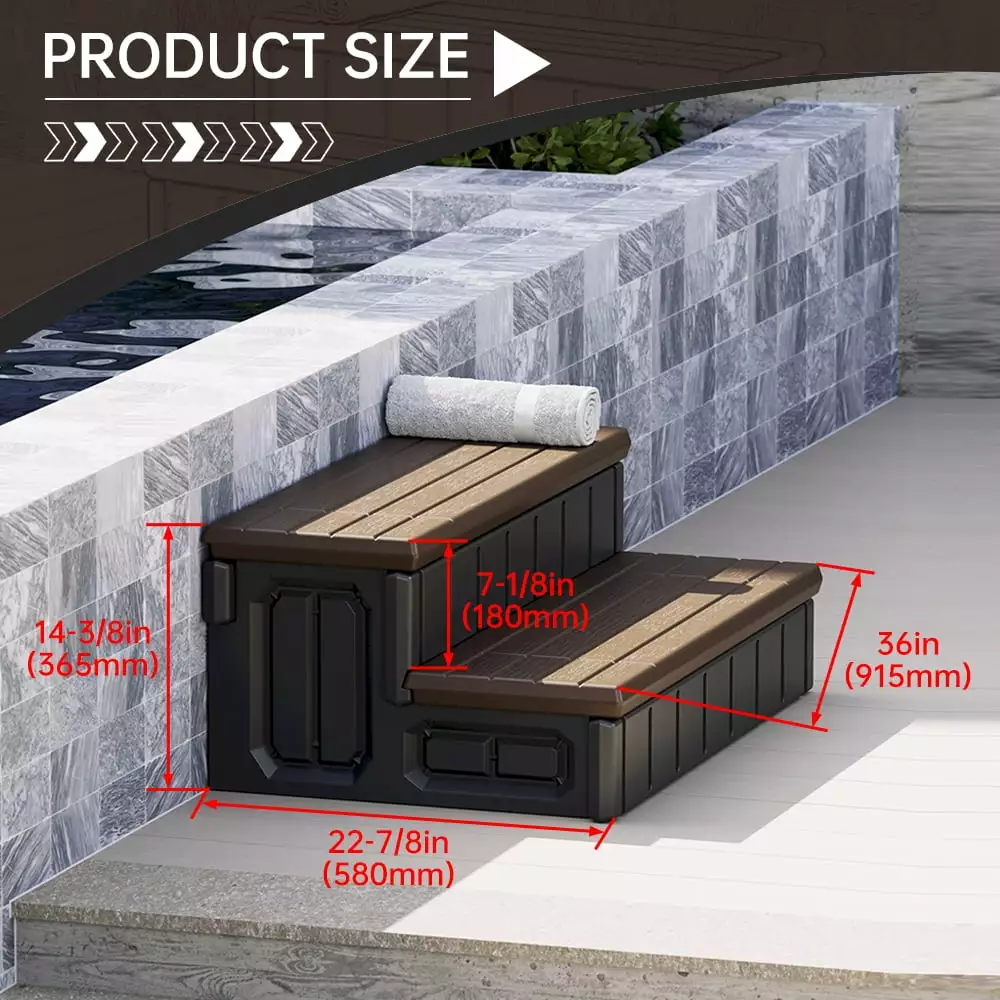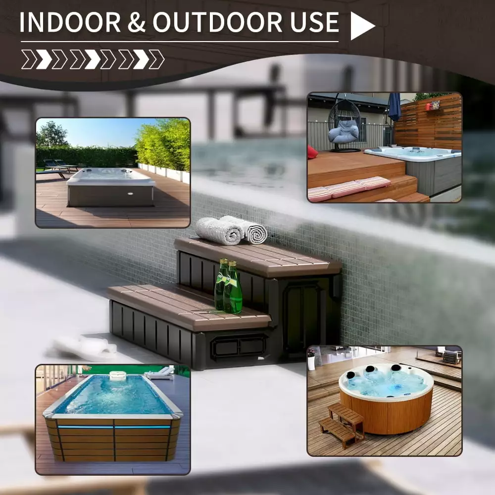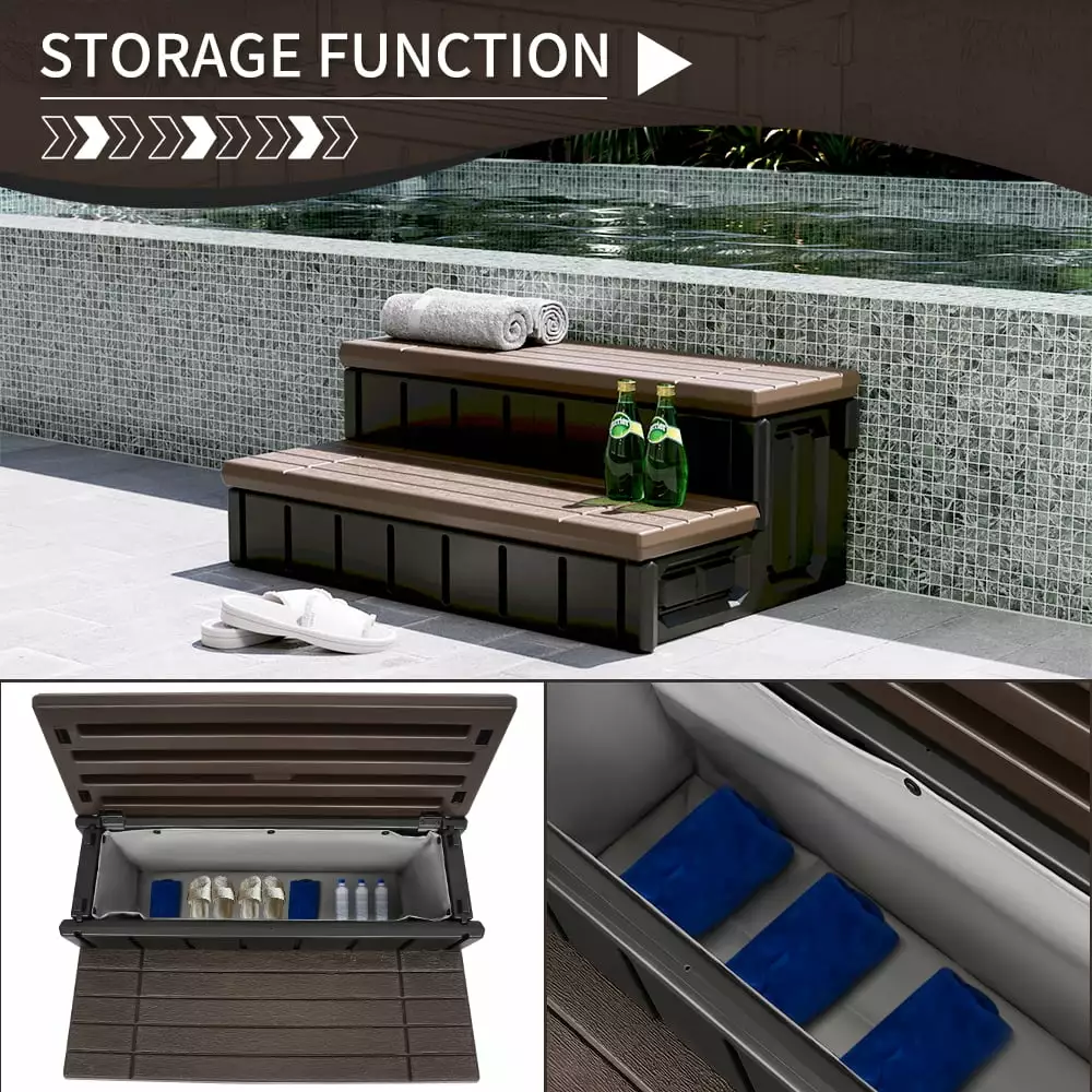 - Storage function: This hot tub step has a large storage space that can be used to store spa-related items. such as cleaning supplies. bath towels. etc. It can be taken by folding the surface of the step. which is simple and convenient.