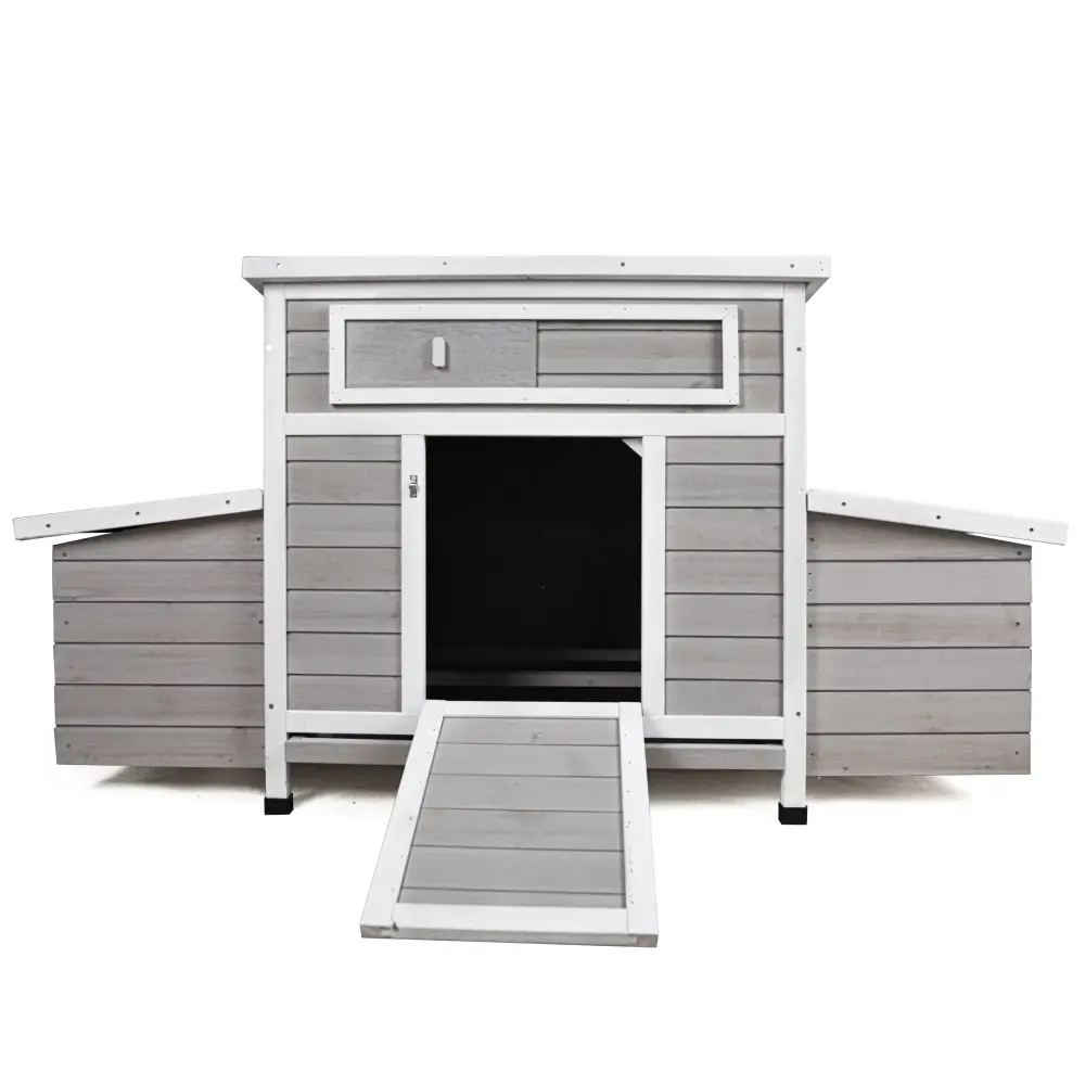 Large Chicken Coop Outdoor Hen House With 2 Sides Nesting Boxes – Gray / White Matte
