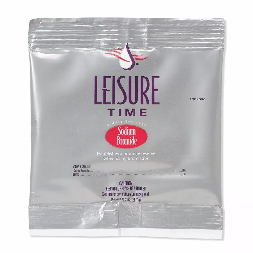 Sodium Bromide establishes an immediate bromide reserve in the spa. Applications: Start-Up: 1. Add 1/2-ounce per 100 gallons of spa water to establish a 30 ppm bromide reserve. 2. Add Brom Tabs to establish a bromine level. 3. Repeat steps 1-2 when spa is drained and refilled. Tips: Leisure Time Sodium Bromide is not a disinfectant. It is used to establish a reserve of bromide in spa or hot tub water. It is necessary to use a sanitizer to disinfect the water. When used with Leisure Time Brom Tabs. the disinfection of the spa will be completely bromine-based and chlorine odors will not exist.Features: