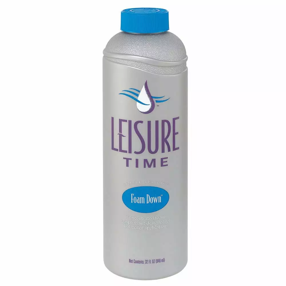Keep your hot tub or spa water clear from bubbling foam with Leisure Time Spa Foam Down. Foam is a common issue in spas and hot tubs and is most commonly introduced into the water by products used in your daily routine. Leisure Time Foam Down will quickly help free your water from foam caused by hair products. deodorants and lotions. It is designed for hot water applications. and it works on contact. This non-oily foam suppressant will help you to maintain and keep your spa or hot tub ready to provide a worry-free relaxing soak or steam.