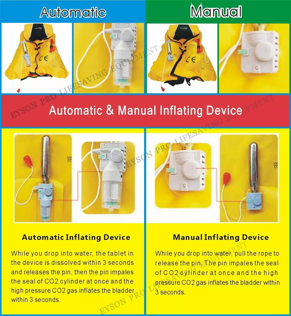 - Inflates less than 3-5 seconds when the wearer manually pulls the inflation handle.