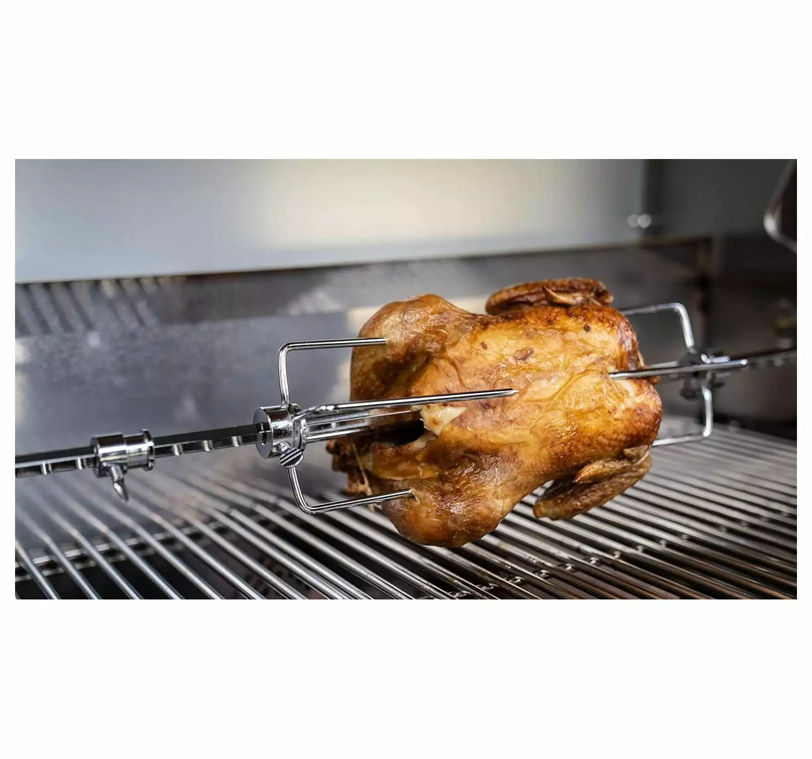- CHROME PLATED SPIT ROD – Chrome plated spit rod works with gas grills up to 29 inch fire box