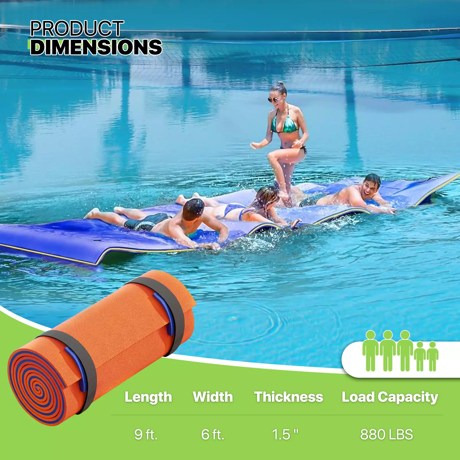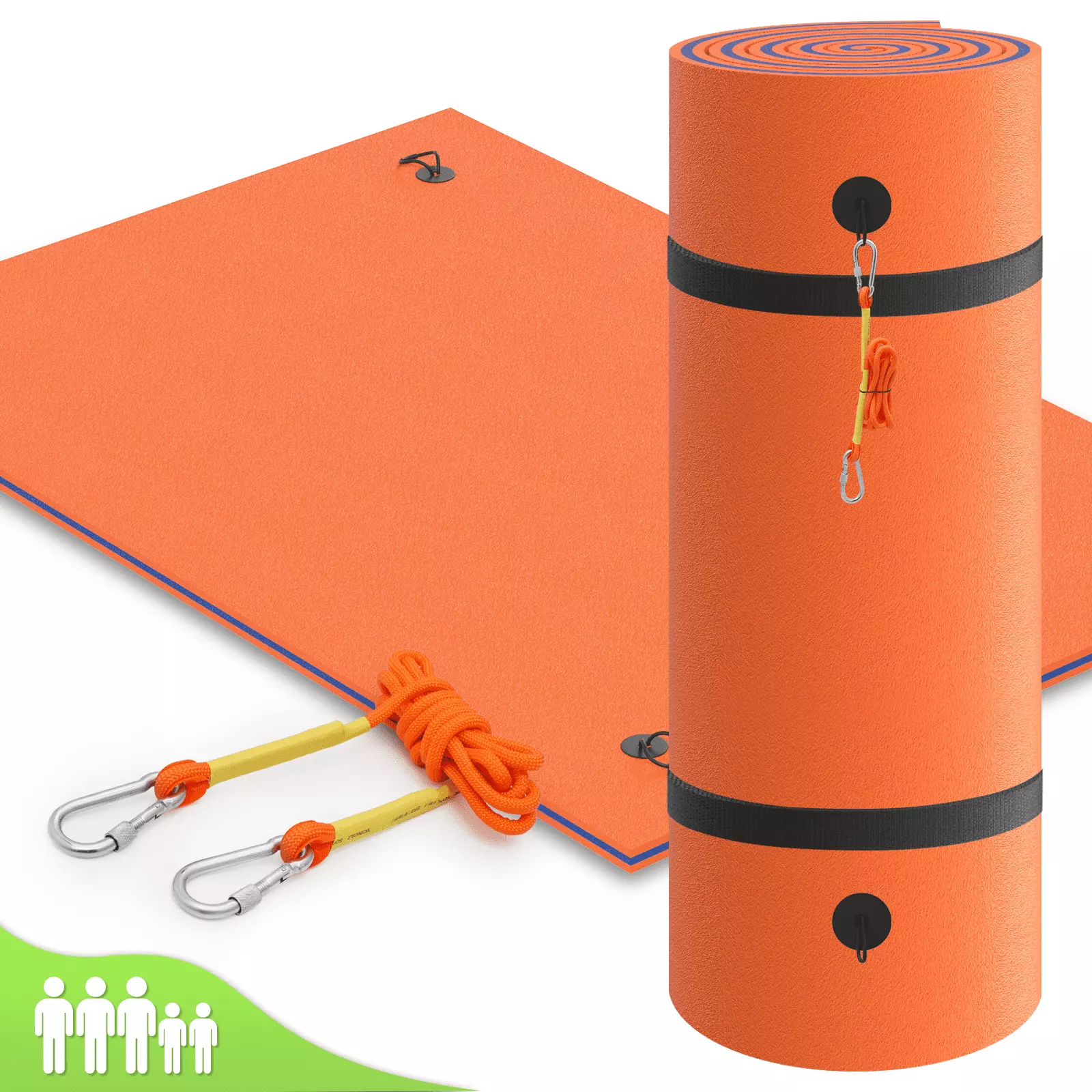 Our floating water mat is made of three plies of tearproof XPE foam that does not absorb water and does not deform easily. This environmentally friendly material is odorless. safe. and its smooth surface can make you more comfortable. - Convenient to Roll up and Store