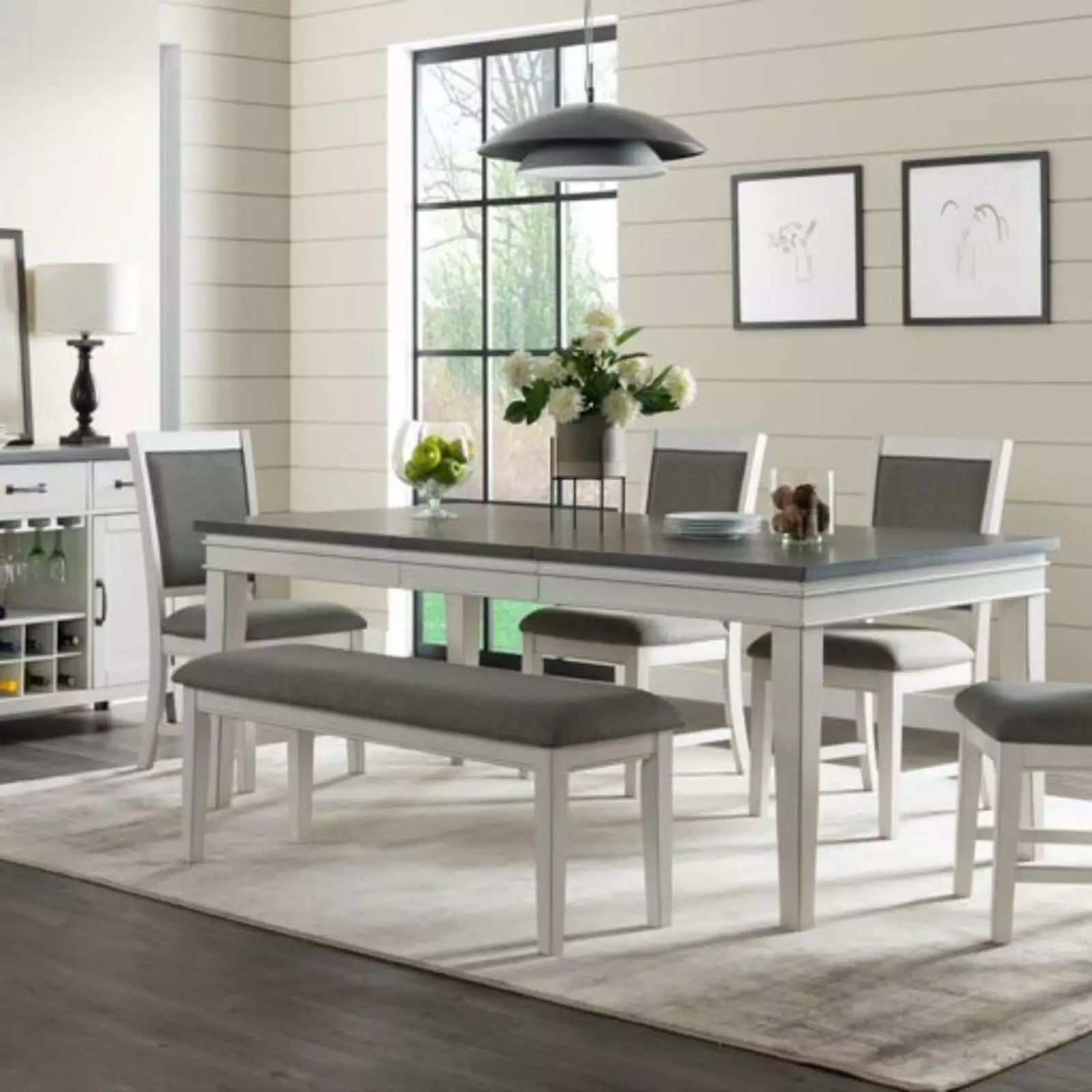 - The Del Mar Dining Room Bench offers Coastal Casual styling to your dining area.|The hand painted style finish on the bench frame has just the right amount of aging and rub-through in an Antique White base.|A complementing grey toned linen is featured on both the seat. front and back of the chair back.|Bench frame is crafted from high quality acacia and rubberwood for long lasting use.|Bench dimensions: 49a** W x 16a** D x 19a** H.|Easy to assemble with all instructions. hardware and tools provided.|Made in Vietnam.