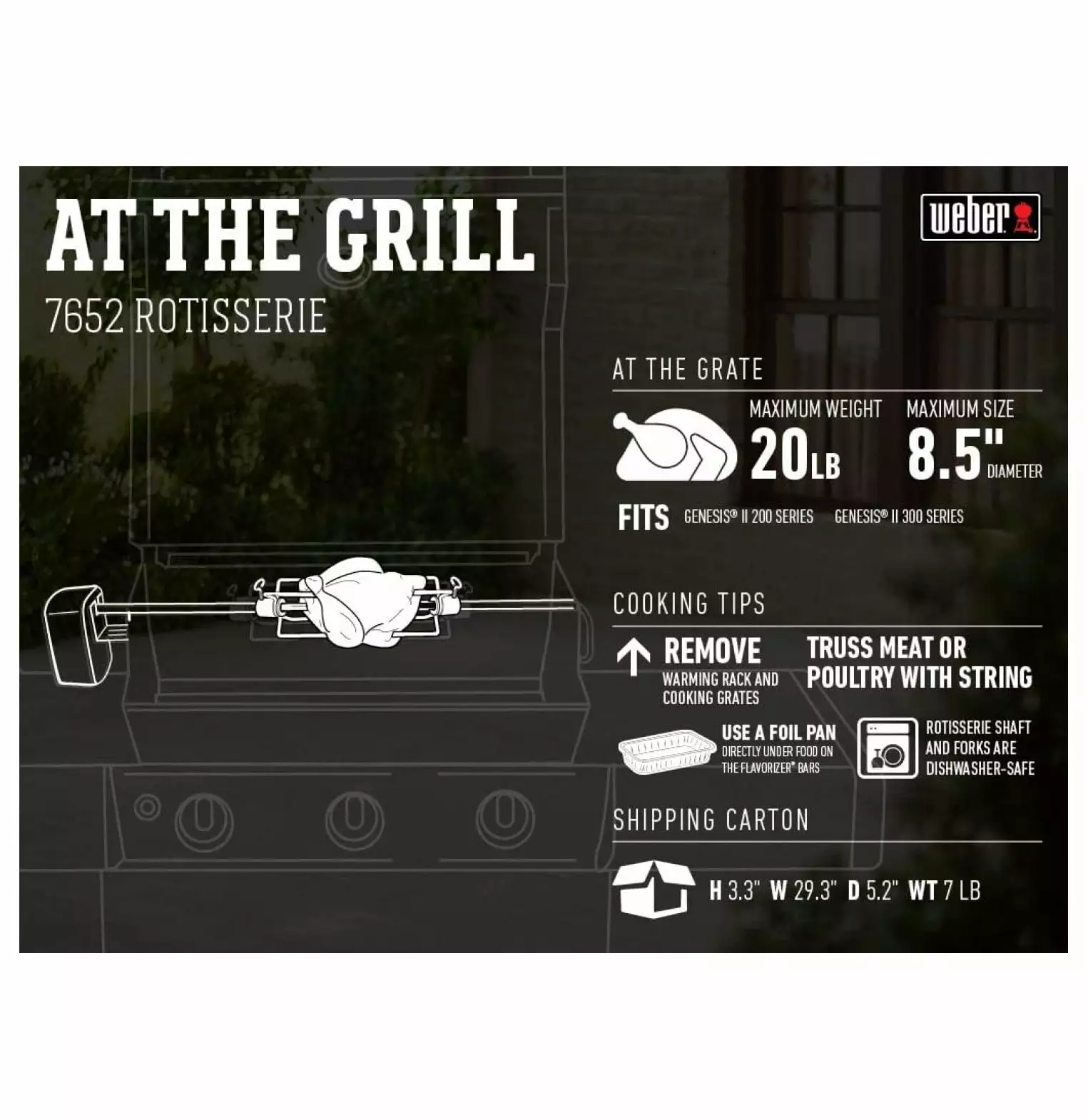 - Mausahen 7652 Rotisserie Fits: Genesis II ; II LX 200 & 300 and E/S 300 series gas grills.