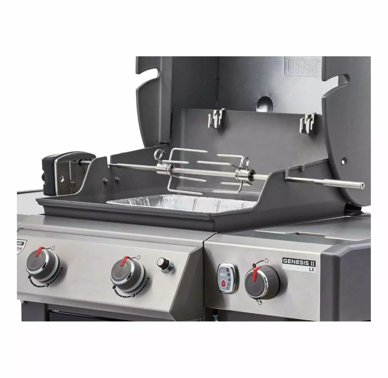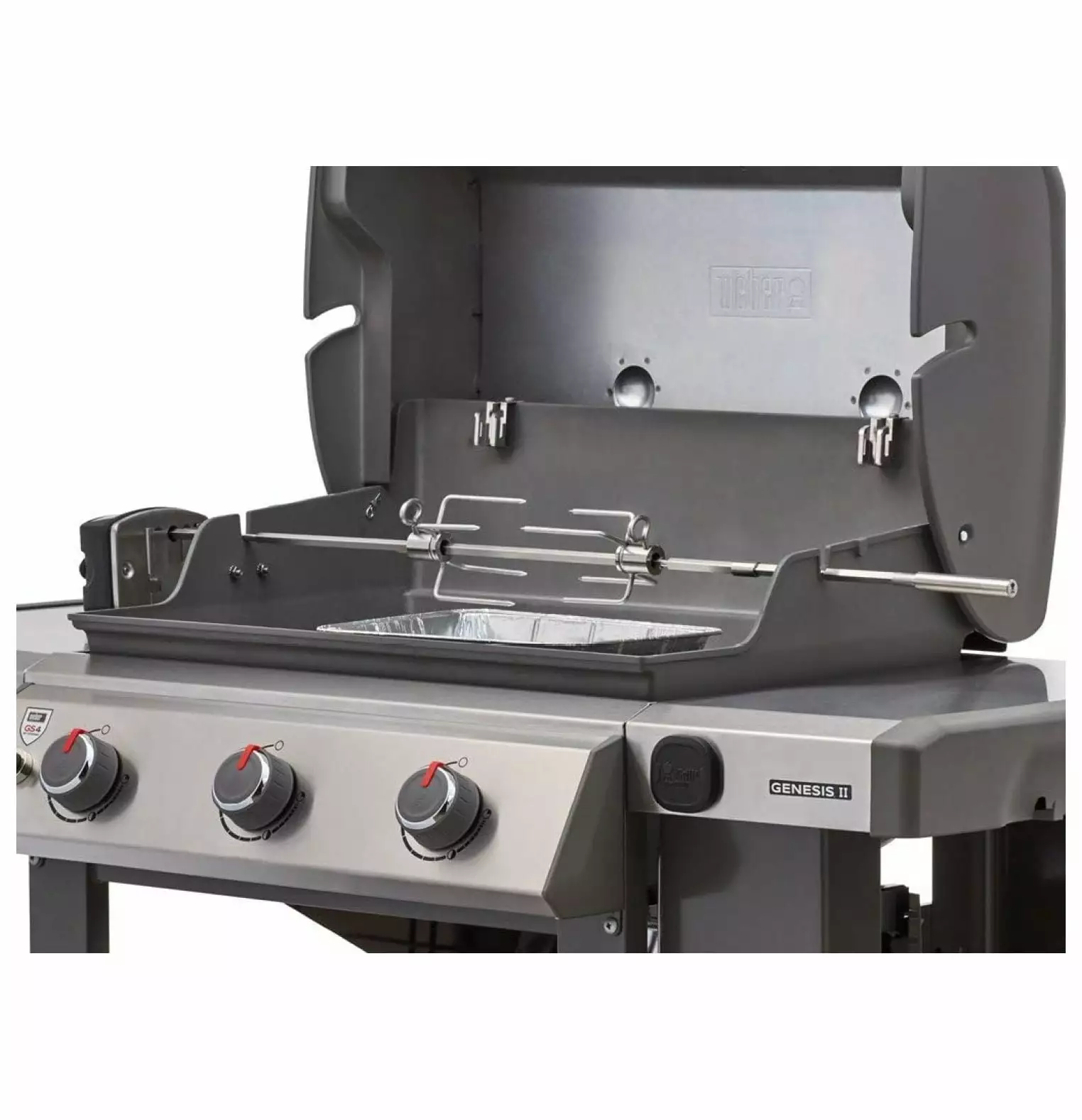 Mausahen rotisserie for use with Genesis II & II LX 2 & 3 burner grills & Genesis 300 series grills. Perfect for outdoor grilling.