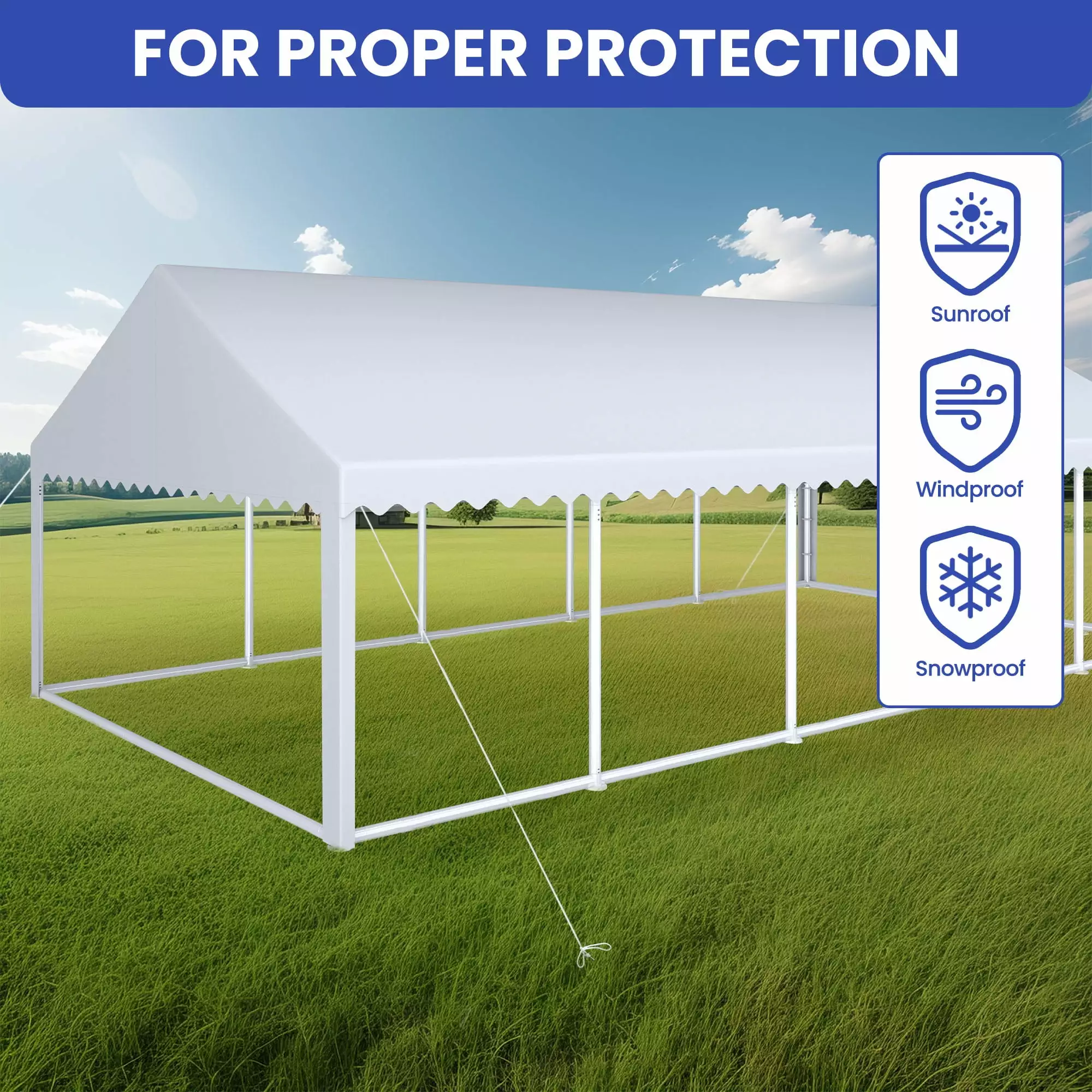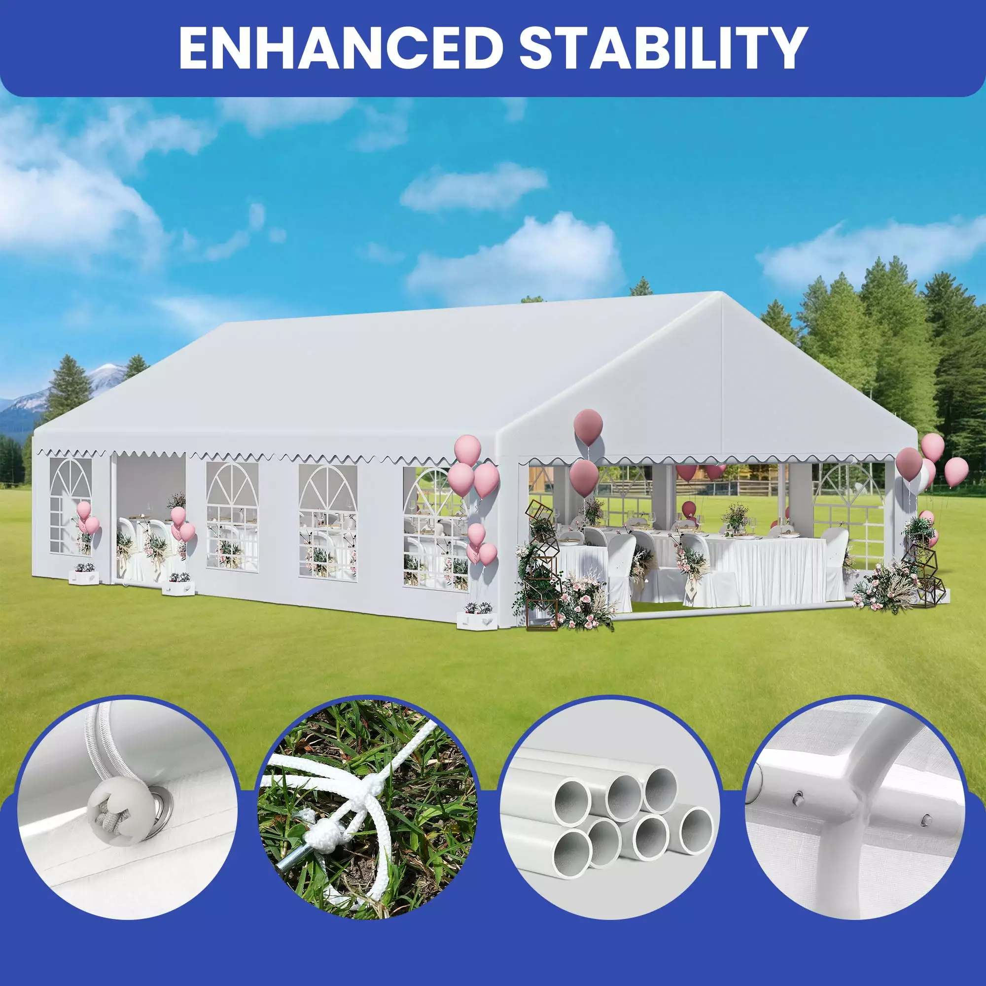 - FLEXIBLE USAGE: This versatile canopy party tent offers versatile outdoor and indoor use. perfect for backyard gatherings. BBQs. weddings. graduations. picnics. and parties.