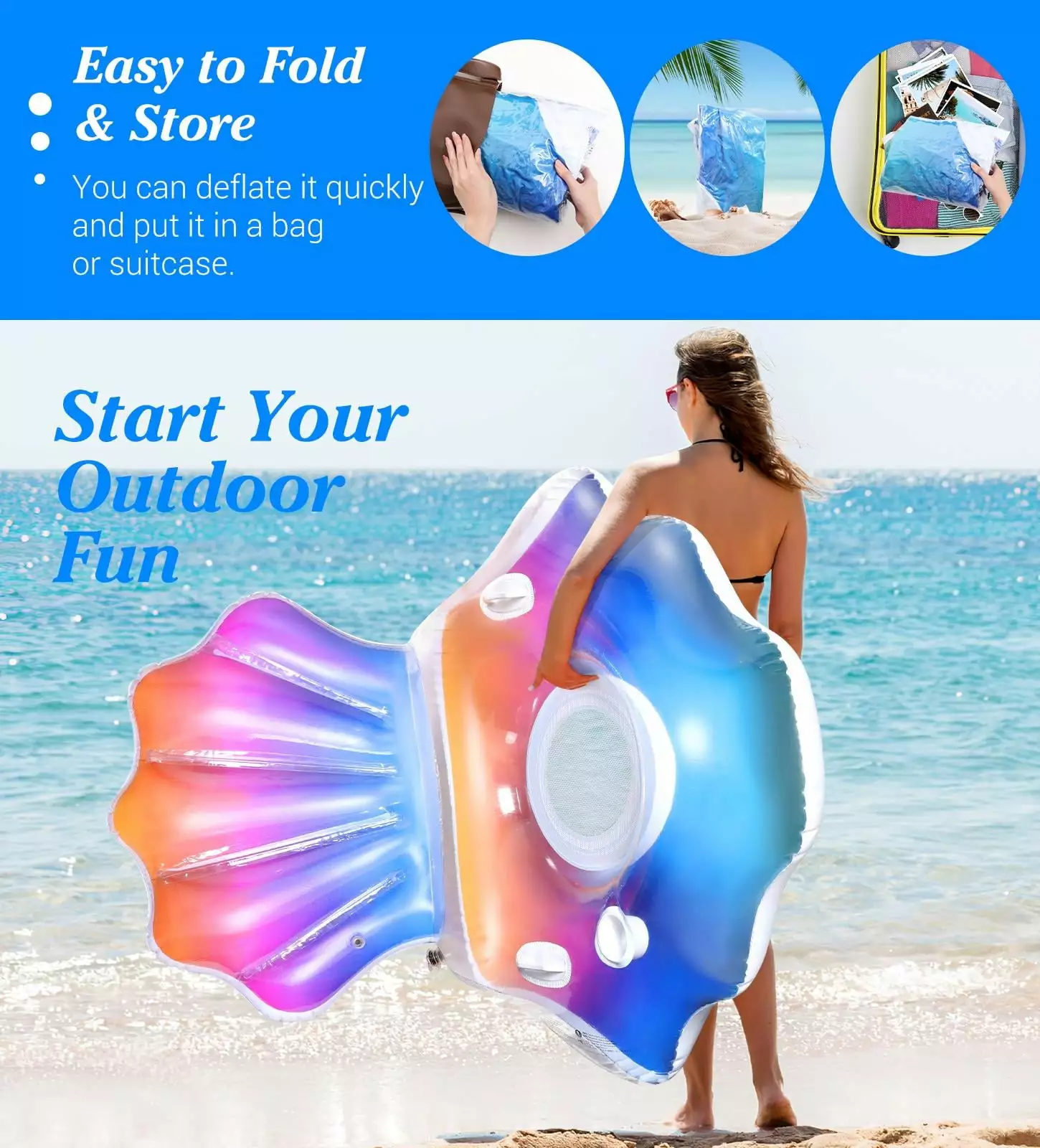 - Seashell Pool Float – Transparent and colorful seashell pool lounger float shines colorfully in the sunlight. the backrest design allows people to relax themselves when sitting inside. and the handles on both sides make you feel more safer.
