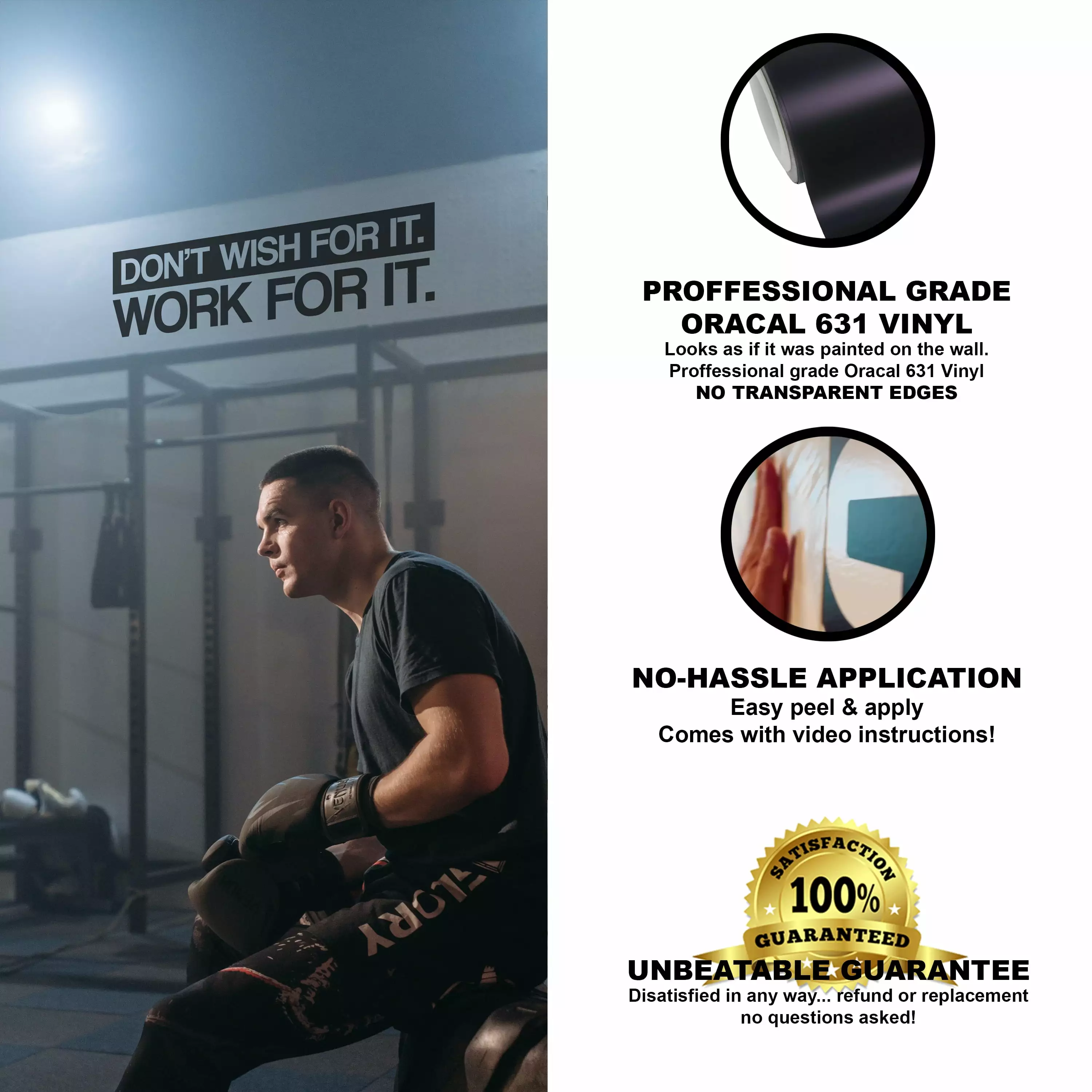 Transform your space and fuel your motivation with our adult Motivational Wall Decal Sticker Quote Wall Art featuring the empowering phrase. "Don’t Wish for It. Work for It." This striking adult wall sticker decal. measuring 37×10 inches. is designed to inspire action and perseverance. Whether it’s in your office. home office. bedroom. gym. or classroom. this inspirational wall decal decor serves as a constant reminder to chase your dreams and put in the effort to achieve your goals.