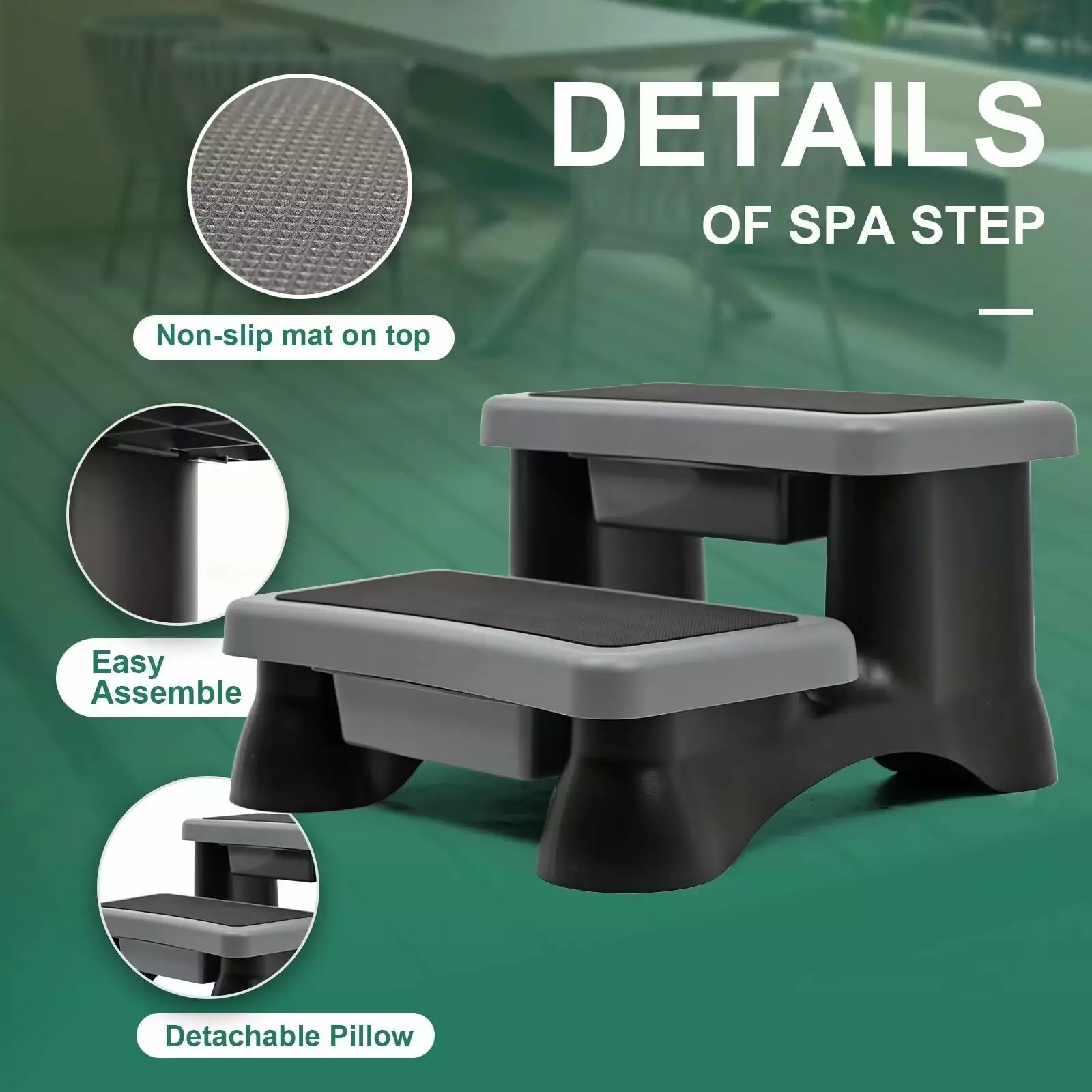 Safe. Non-Slip Steps For Everyday Use Our convenient. easy-to-grip stairs feature textured grooves to help you step up to your hot tub with ease. and can be used for hard to reach elevated patio or deck areas as well