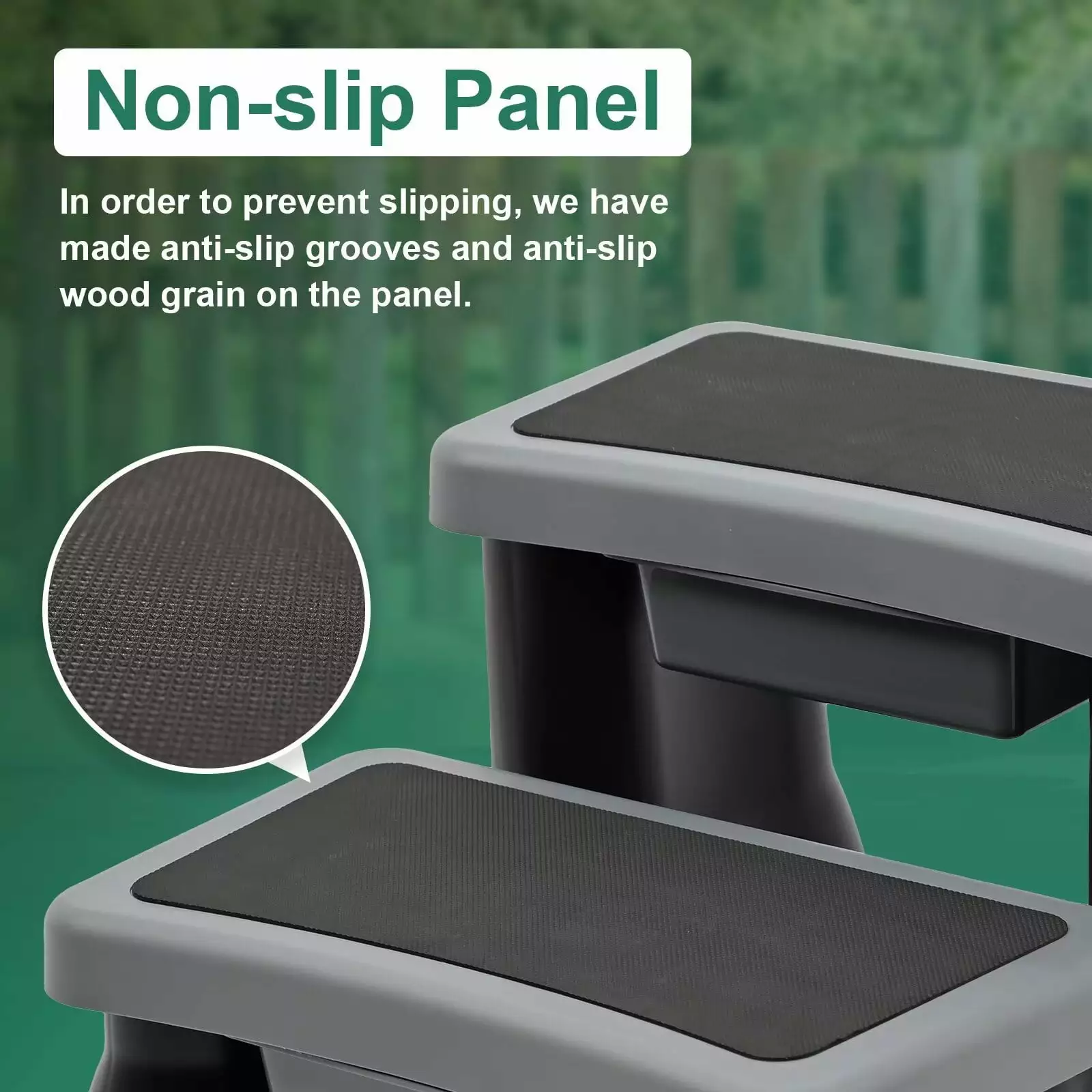 Anti-Slip Step Surface For an increased-safety step stool. the EVA matting on each step provides an anti slip surface for safer footing with when exiting the spa tub with wet feet.