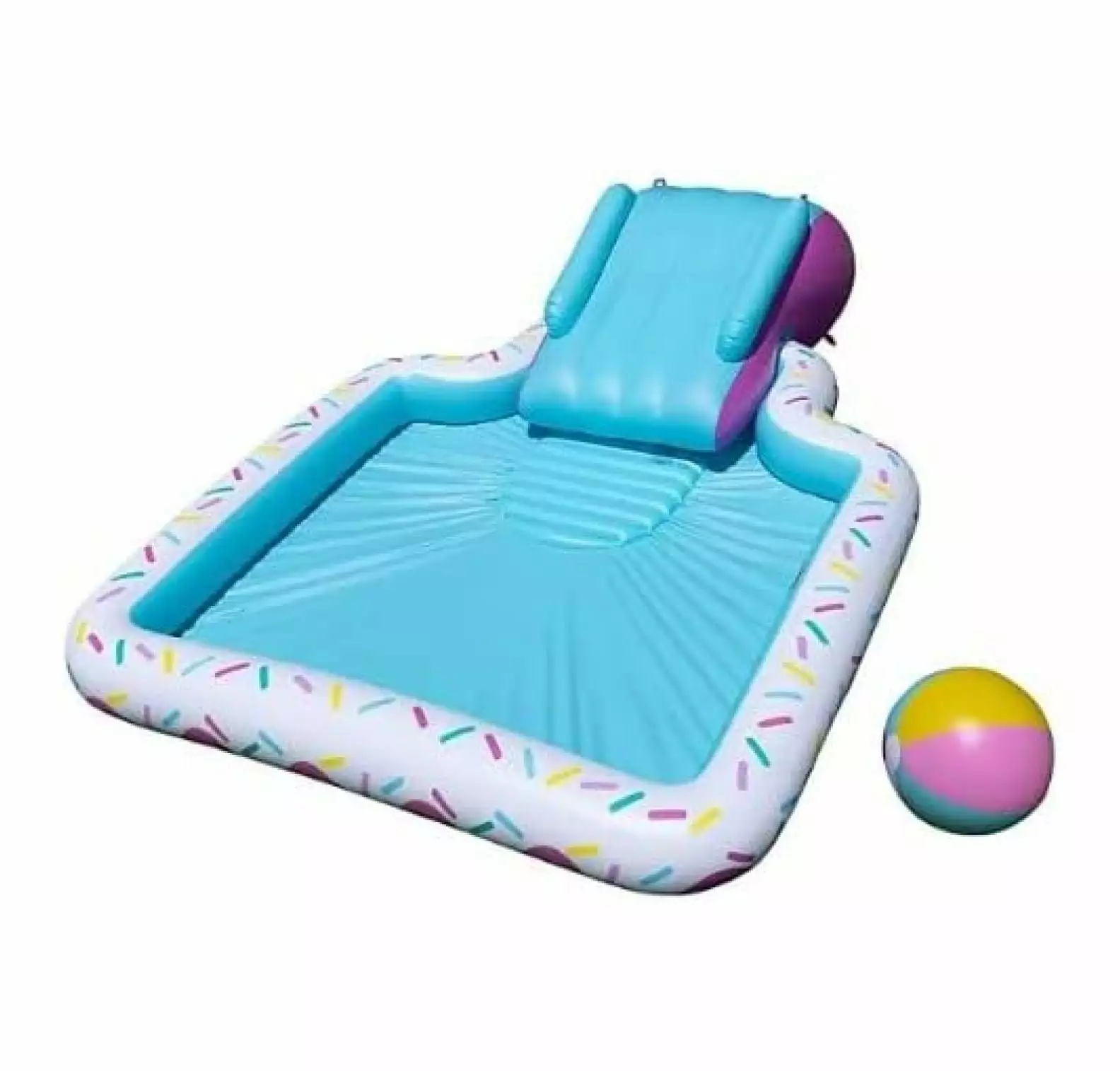 Our novelty slide with pool sprayer is the perfect way for your entire family to combine relaxation and recreation in your backyard. Kids and adults alike will enjoy warm-weather fun as they and play. This unique giant portable pool has a cooling crow’s nest sprayer. The sprayer is fed directly from an easily standard garden hose to the pool’s side for an endless water supply.Novelty Pool (Donut)
