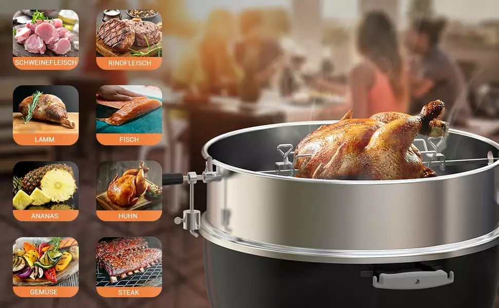 - It turns your kettle grill into a chiken roaster. which is ideal for hosting parties with families and friends. For up to two chickens. roasts and many other delicacies from the skewer at the same time.